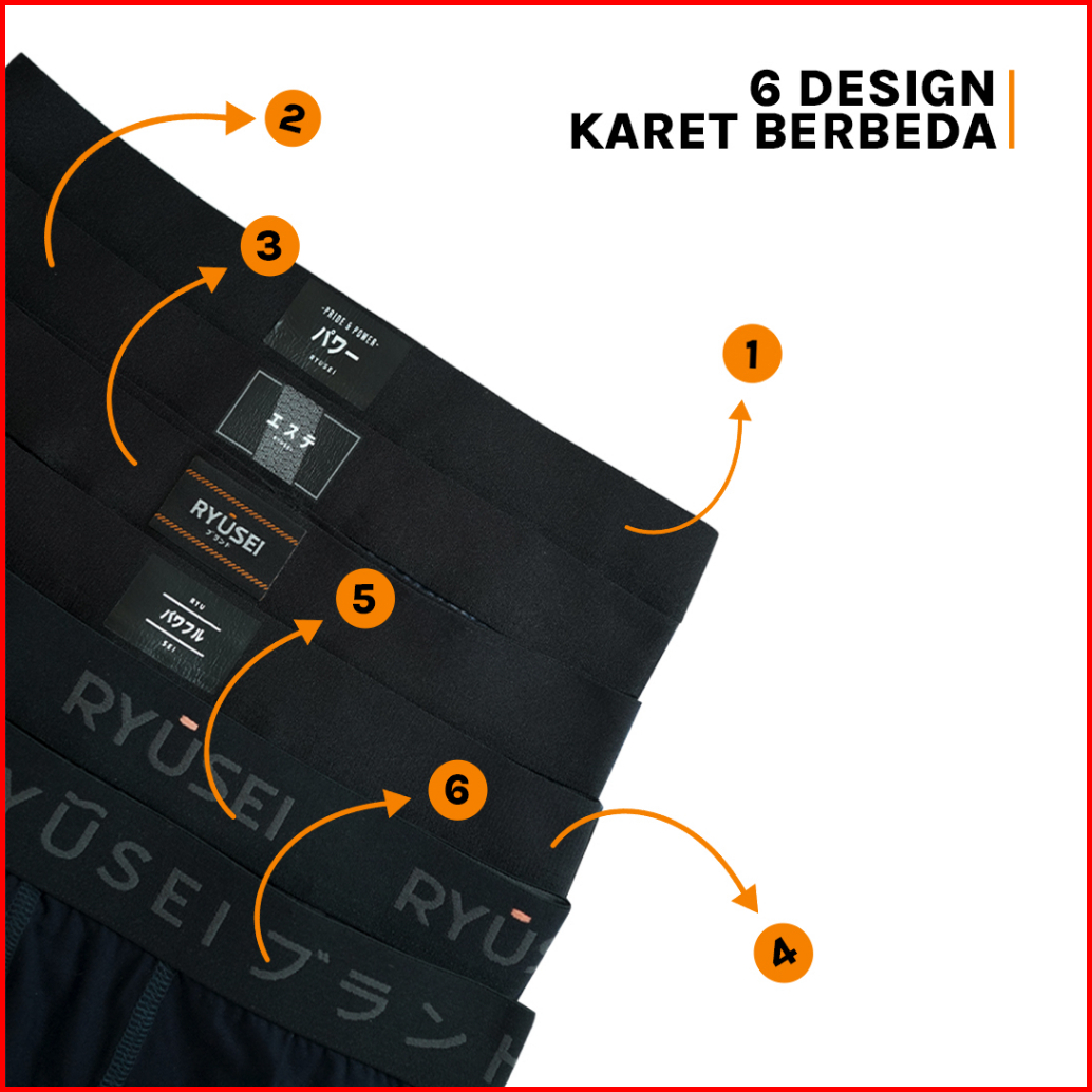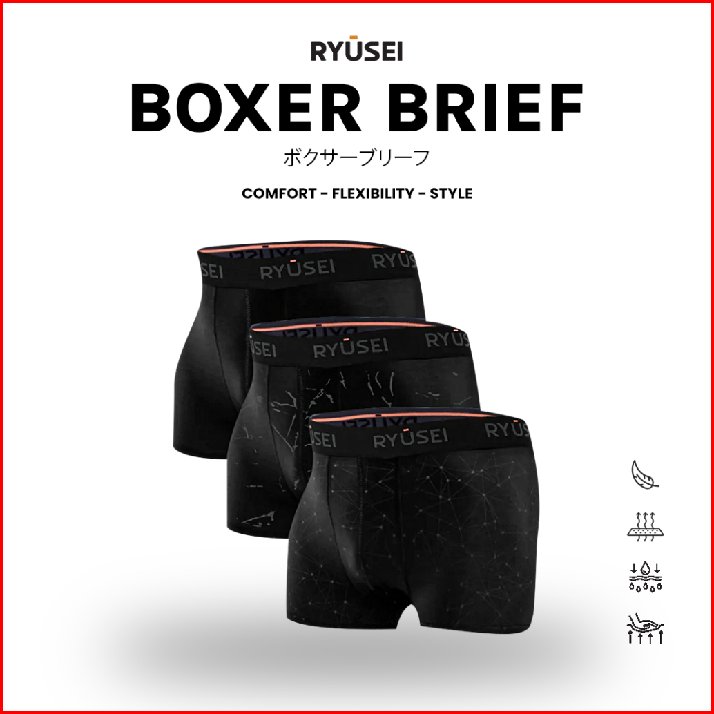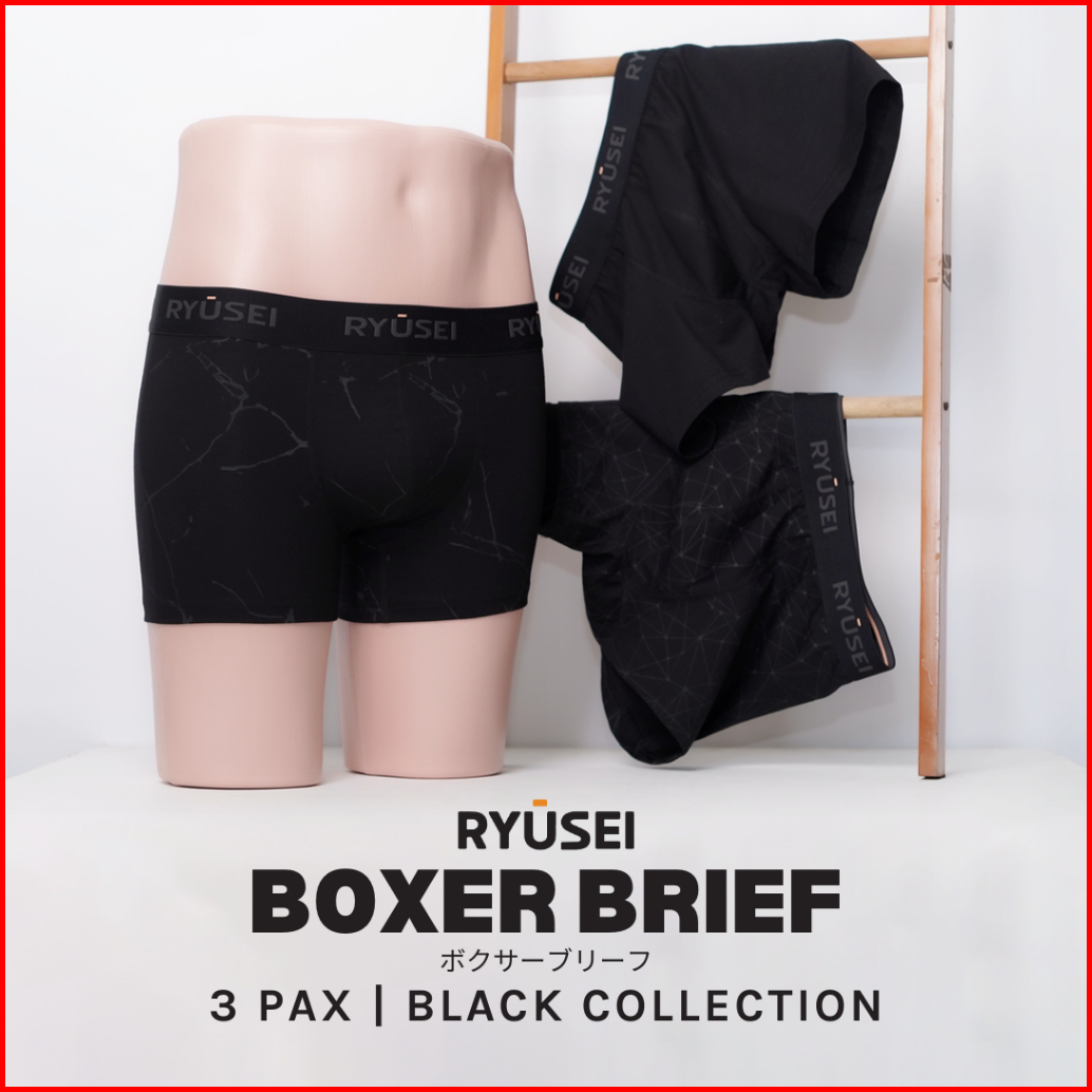 Ryusei Boxer Katun Spandex 3 Pcs - Black Collection Jahitan Seamless