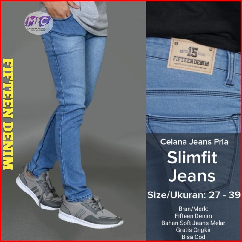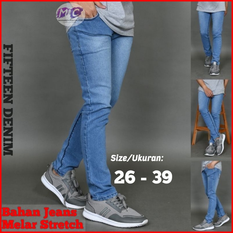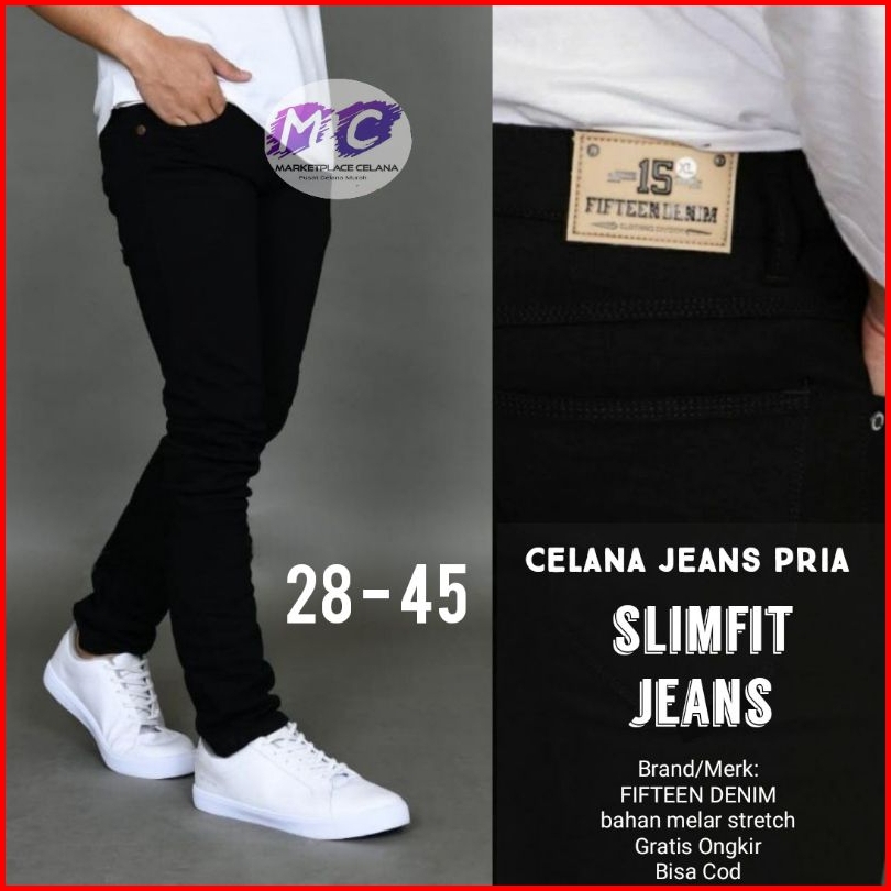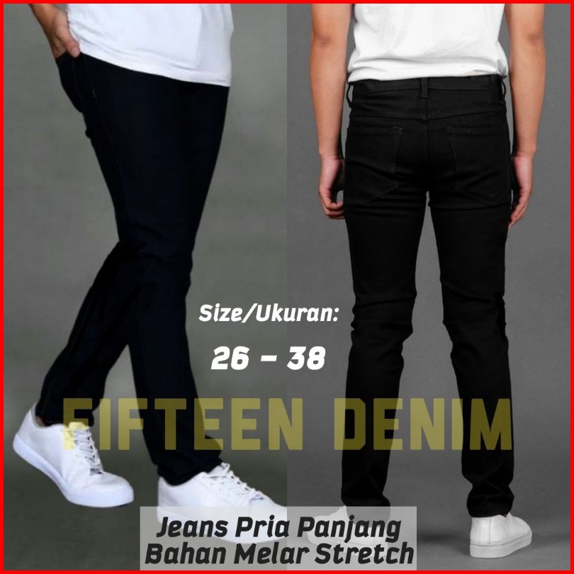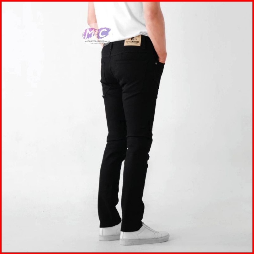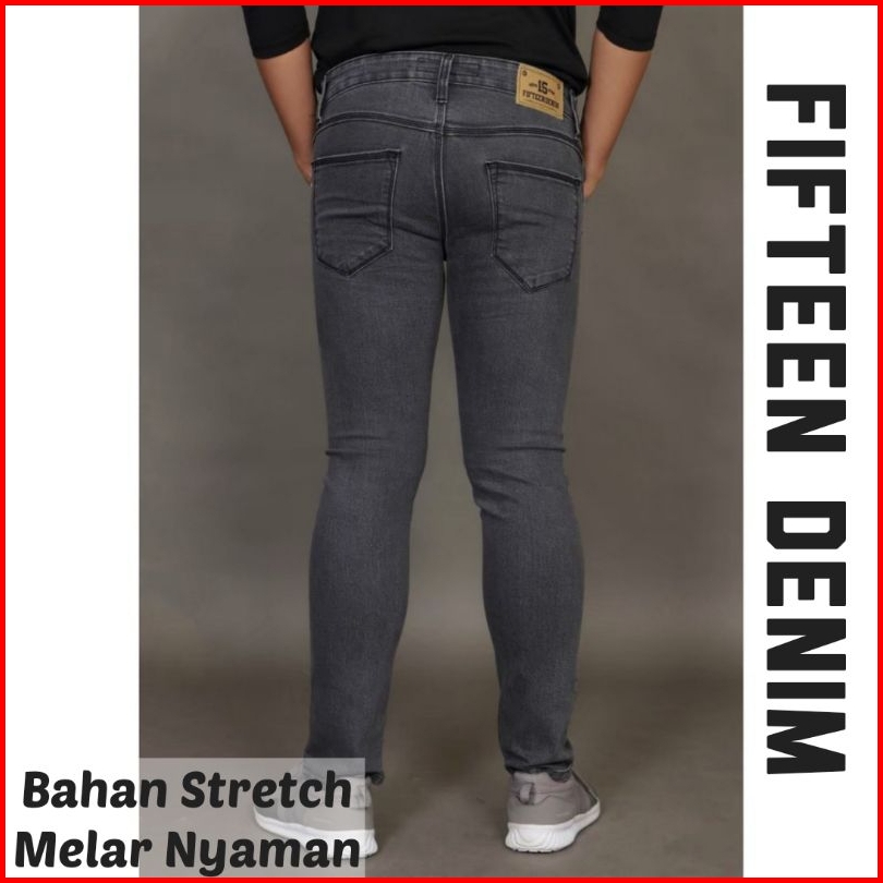 Celana Jeans Hitam Pria Fifteen Denim Jeans Panjang Pensil Skinny Semi Slim Fit Cowok Cowo Pria Bahan Denim Stretch Terb