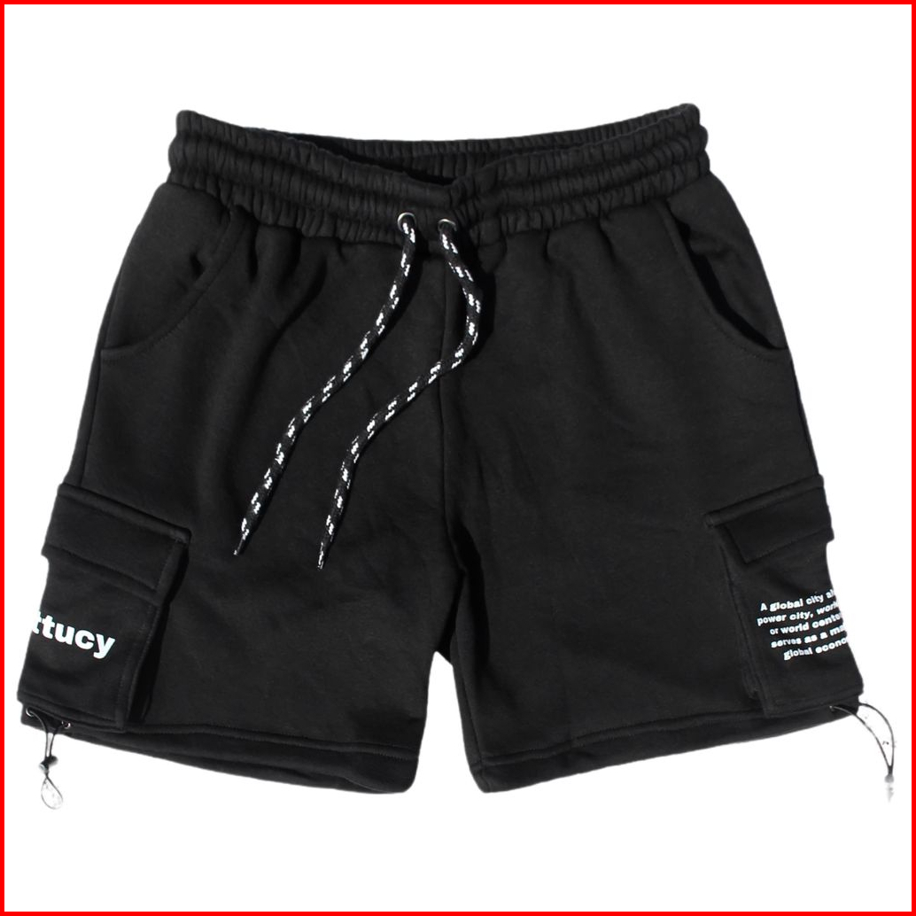 Lettucy Celana Pendek Cargo Bahan Fleece Celana Pendek Celana Cargo Celana Pria Wanita Celana Santai Hitam