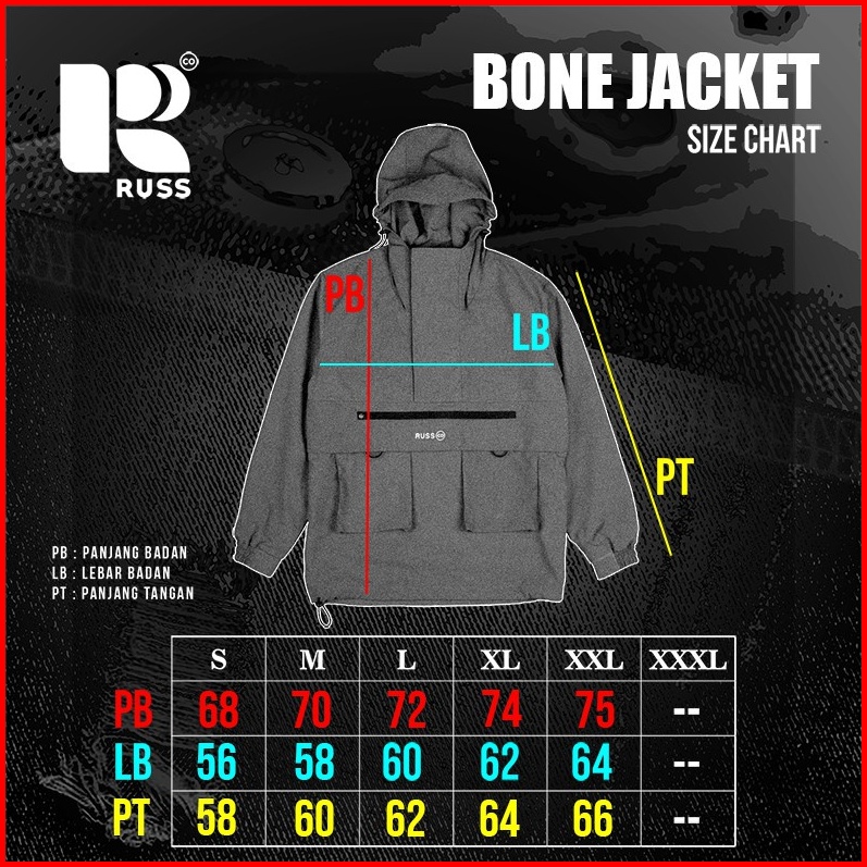 Russ Jacket Anorak Pria Bone Black Up To Big Size