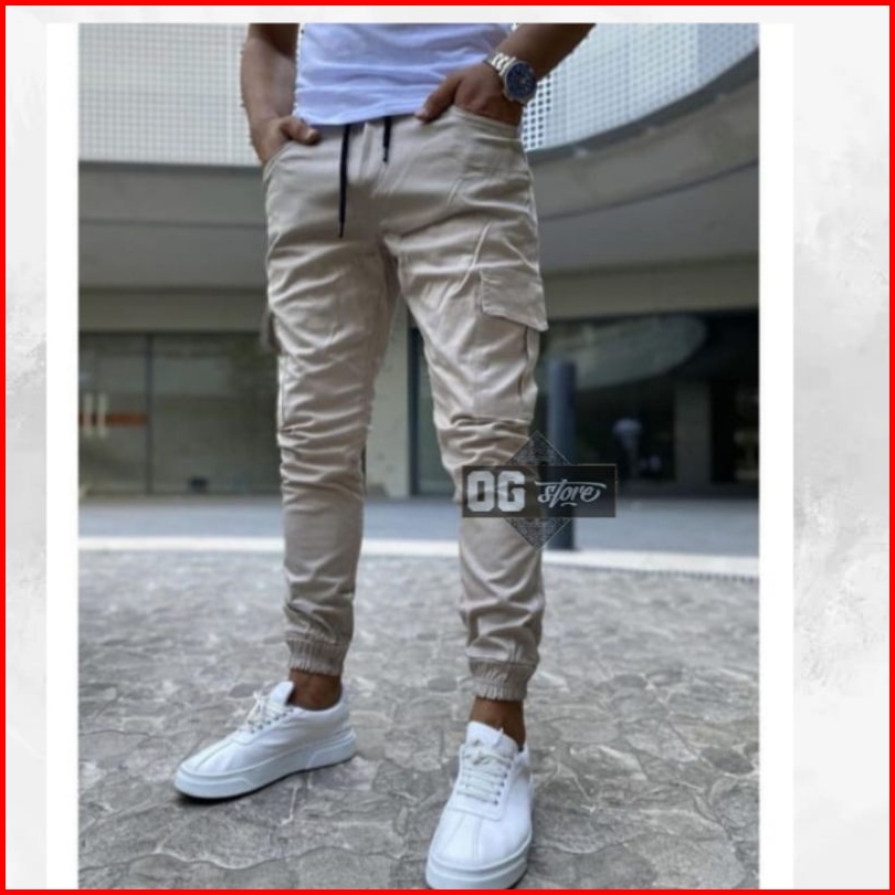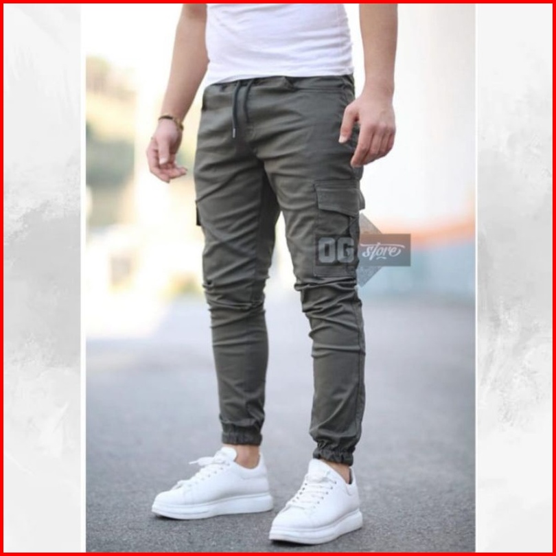 Celana Panjang Jogger Cargo Pria Olahraga Bahan Melar Size 27-38 Jumbo