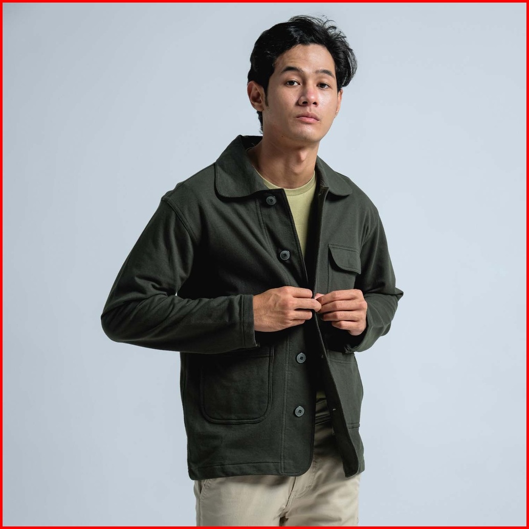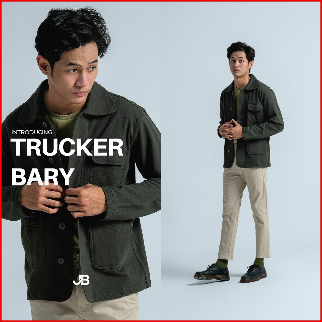 Jb - Trucker Bary Green Army - Jaket Klasik Pria