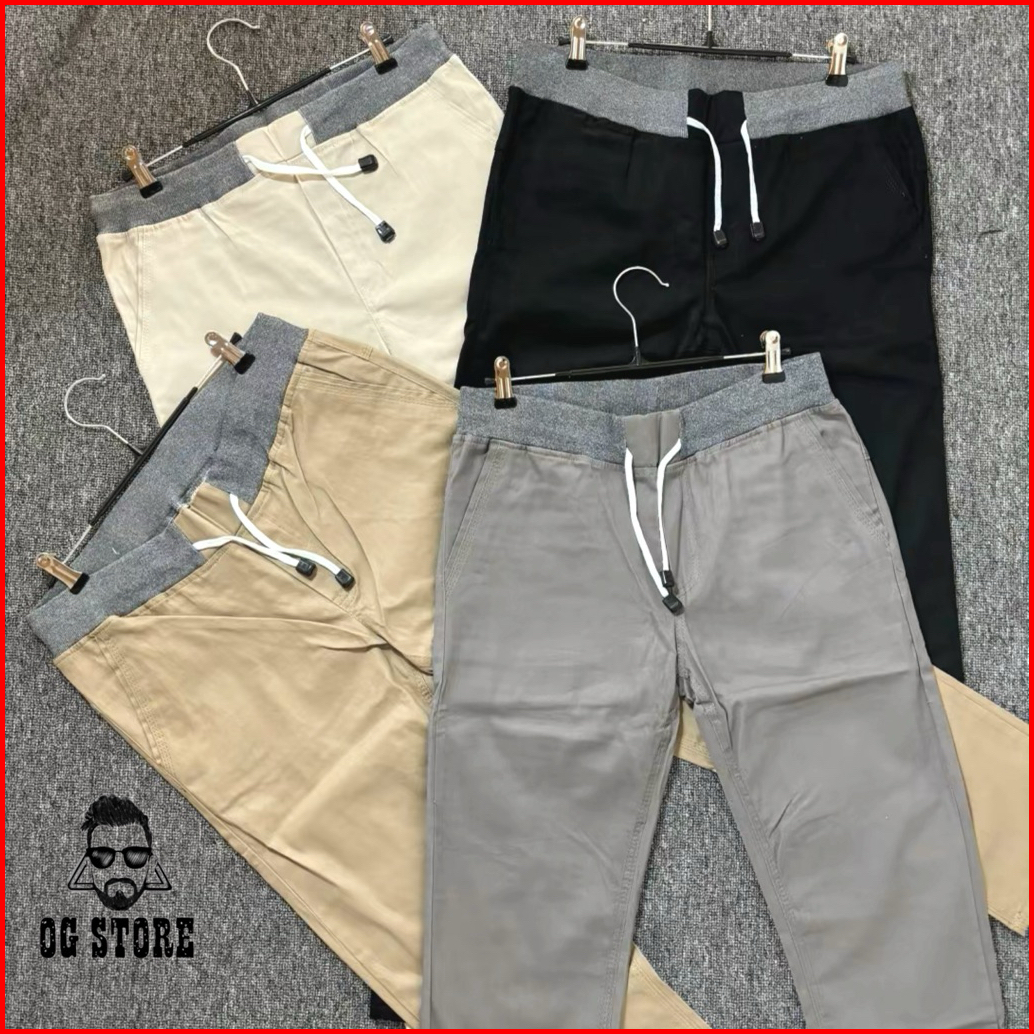 Celana Panjang Chino Kolor Karet Pinggang Polos Bahan Katun Size 27-50 Jumbo Big Size