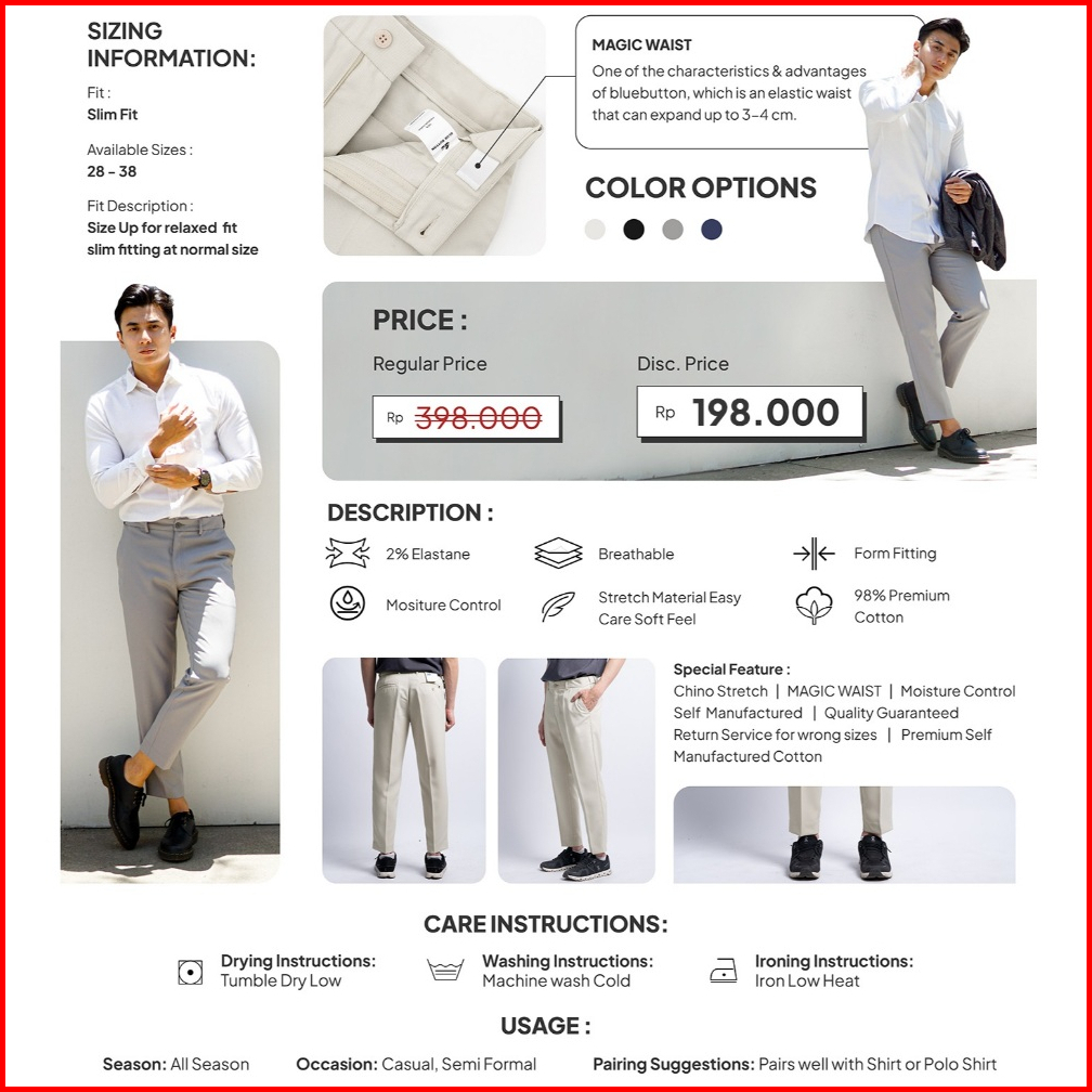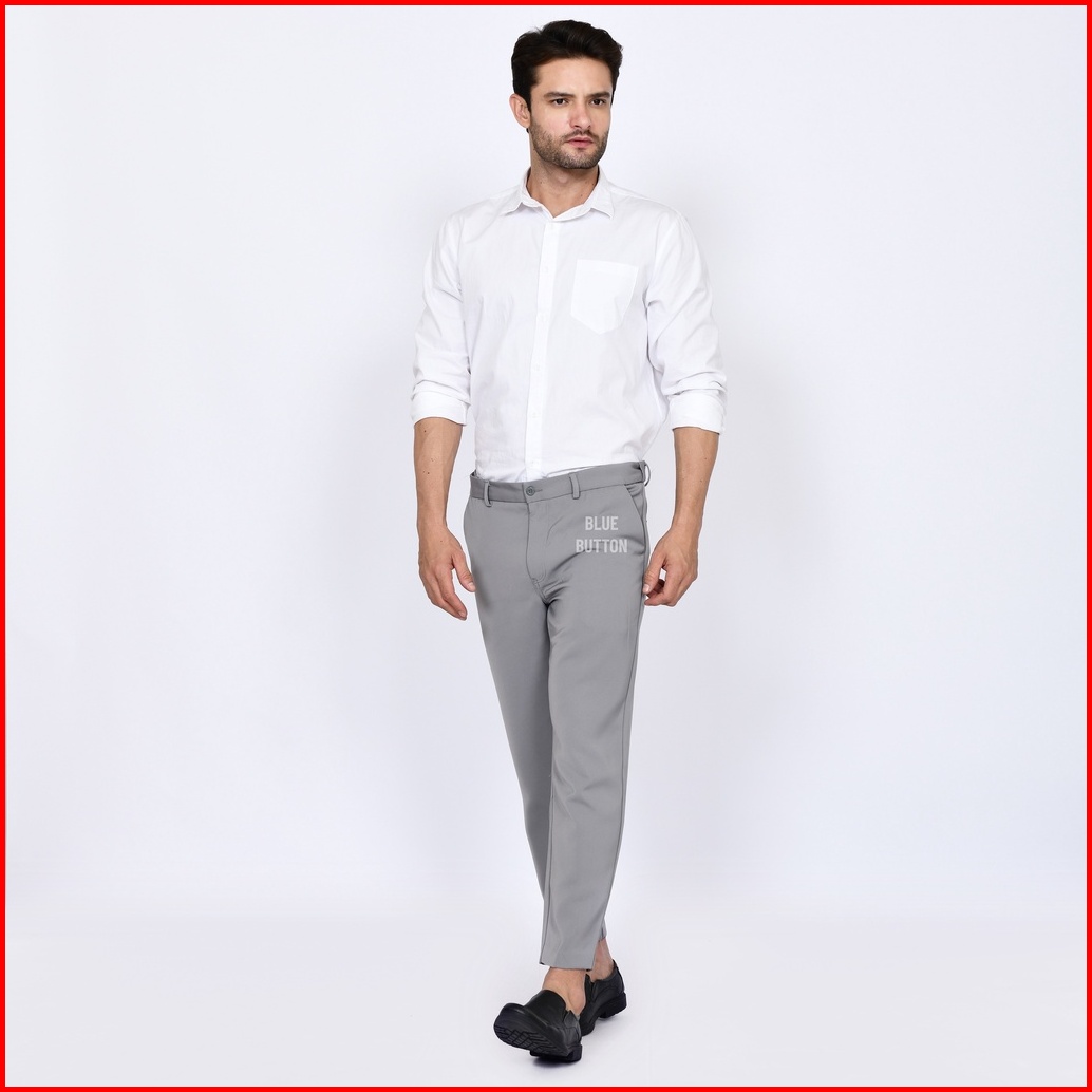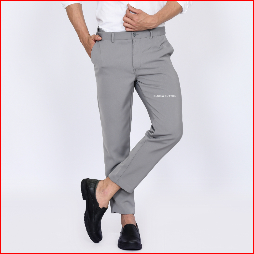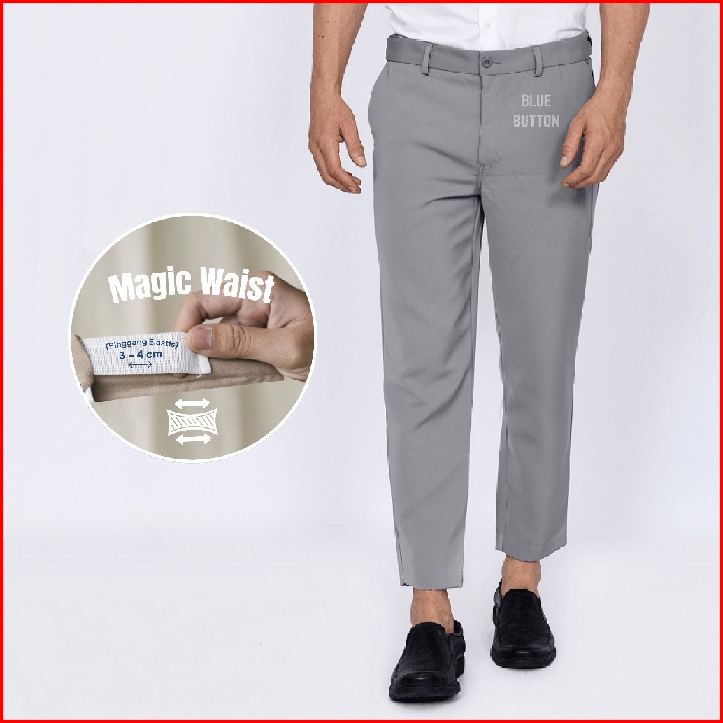 Bluebutton Celana Bahan Pria Slim Fit Ankle Pants Air Celana Formal Kerja Light Grey