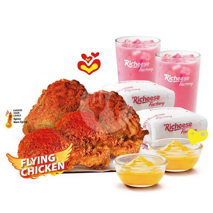 Amo Cola Chicken, Combo Amo Cola Chicken, Chicken Bites Amo Cola, Amo Cola Friend Fries, Amo Cola Nugget 6pcs, Kids Meal Fire Chicken, Kids Meal Flying Chicken, Kids Meal Richicken, Kids Meal Richeese Factory Nugget, Loaded Fries Chicken Bites, Loaded Fries Chicken Katsu, Loaded Fries Richeese Factory Nugget, Nugget Non Spicy 6 pcs, Nugget Spicy 6 pcs, Nugget Non Spicy 9 pcs, Nugget Spicy 9 pcs, CD Music Vina Panduwinata, Combo 1 CD Music Fire Chicken, Combo 1 CD Music Flying Chicken, Combo 1 CD Music Richicken, Combo 2 CD Music Fire Chicken, Combo 2 CD Music Flying Chicken, Combo 2 CD Music Richicken, CD Honey Sweet Compilation, Combo 1 CD Music Honey Fire Chicken, Combo 1 CD Music Honey Flying Chicken, Combo 1 CD Music Honey Richicken, Combo 2 CD Music Honey Fire Chicken, Combo 2 CD Music Honey Flying Chicken, Combo 2 CD Music Honey Richicken, Combo Hampers 1, Combo Hampers 2, Combo Fire Chicken + Cheesy Cream Soup, Combo Fire Chicken + Perkedel, Nugget Bubble Crumb Selection Series 250gr, Nugget Classic Recipe Series 250gr, Nugget Bubble Gold Series 500gr, Smoke Bratwurst 360gr, Drum Stick Fire Chicken 2pcs, Fire Chicken 3pcs, Fire Chicken 5pcs, Fire Chicken Whole, Combo 4 Fire Wings, Combo 1 Fire Chicken, Combo Duo Fire Chicken, Combo Fire Drum Stick, Combo Cheese Crackling, Pahe Fire Chicken, Fire Wings 3pcs, Fire Wings 6pcs, Fire Chicken 1pcs, Fire Chicken 8pcs, Drum Stick Flying Chicken 2pcs, Flying Chicken 1pcs, Flying Chicken 3pcs, Flying Chicken 5pcs, Flying Chicken 8pcs, Flying Chicken Whole, Pahe Flying Chicken, Combo 2 Flying Chicken Personal, Combo 1 Flying Chicken Personal + Perkedel, Combo 1 Flying Chicken Personal + Cheesy Cream Sou, Drum Stick Richicken 2pcs, Richicken 1pcs, Richicken 3pcs, Richicken 5pcs, Richicken 8pcs, Pahe Richicken, Combo 1 Richicken + Perkedel, Combo 1 Richicken + Cheesy Cream Soup, Combo 2 Richicken, Big Eight Flying Chicken / Richicken, Big Eight Fire Chicken, Big Five Fire Chicken, Big Five Flying Chicken / Richicken, Big Four Flying Chicken / Richicken, Big Four Fire Chicken, Combo Flying Chicken Whole, Combo Fire Chicken Whole, BBQ Sauce Lev 0, BBQ Sauce Lev 1, BBQ Sauce Lev 2, BBQ Sauce Lev 3, BBQ Sauce Lev 4, BBQ Sauce Lev 5, Rice Ala Carte, Perkedel, Cheesy Cream Soup, Cheese Crackling, Fire French Fries, French Fries, Fire Wedges, Chicken Bites Spicy, Chicken Bites Non Spicy, Combo Chicken FB-1, Combo Chicken FB-2, Fire Burger Beef, Fire Burger Chicken, Combo Fire Burger Beef, Combo Fire Burger Chicken, Combo Fries Fire Burger Beef, Combo Fries Fire Burger Chicken, Fire Burger Lite, Combo Chicken RB-1, Combo Chicken RB-2, Rich Burger - Beef, Rich Burger Sauce, Rich Burger - Chicken, Combo Rich Burger - Beef, Combo Rich Burger - Chicken, Combo Fries Rich Burger - Beef, Combo Fries Rich Burger - Chicken, Rich Burger Lite, Pink Lava Medium, Pink Lava Large, Pink Lava 1L, Iced Coffee Milk, Iced Chocolate, Iced Mocha, Iced Vanilla latte, Peach Osmanthus Medium, Peach Osmanthus Large, Combo 1 Fire Chicken,