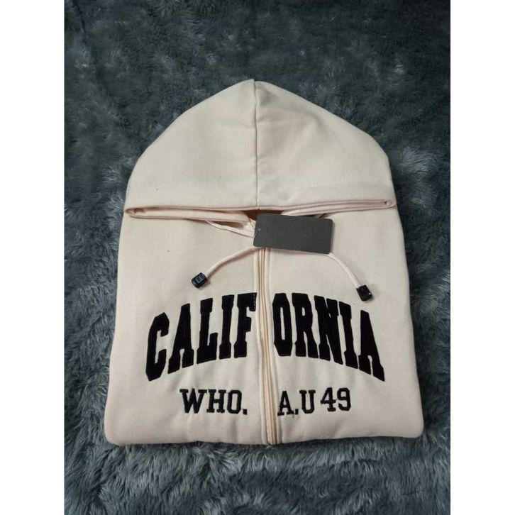 Atasan Pria/Jaket Hoodie WHO AU Califonia Abu Grey 1849 Abu Zipper Pria Wanita Teks Pull Bordir Premium Quality