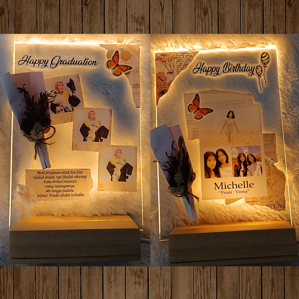 Acrylic LED Custom Kado Hadiah Hiasan Dinding Wisuda Graduation UlangTahun Pernikahan Foto Murah Wall Decor Akrilik