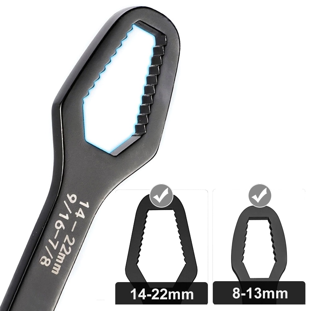 Allefix Kunci Ring Universal Double Head Wrench Adjustable Kunci Ring Multi Size14mm-22mm/8mm-13mm 6551