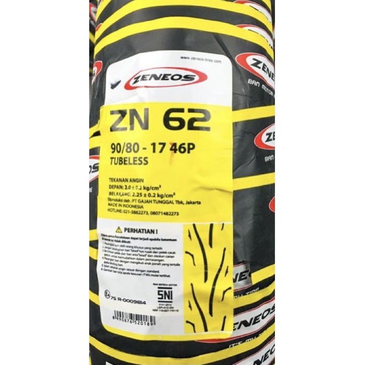 Ban Zeneos ZN62 90/80 Ring 17 Tubeless Terbaru