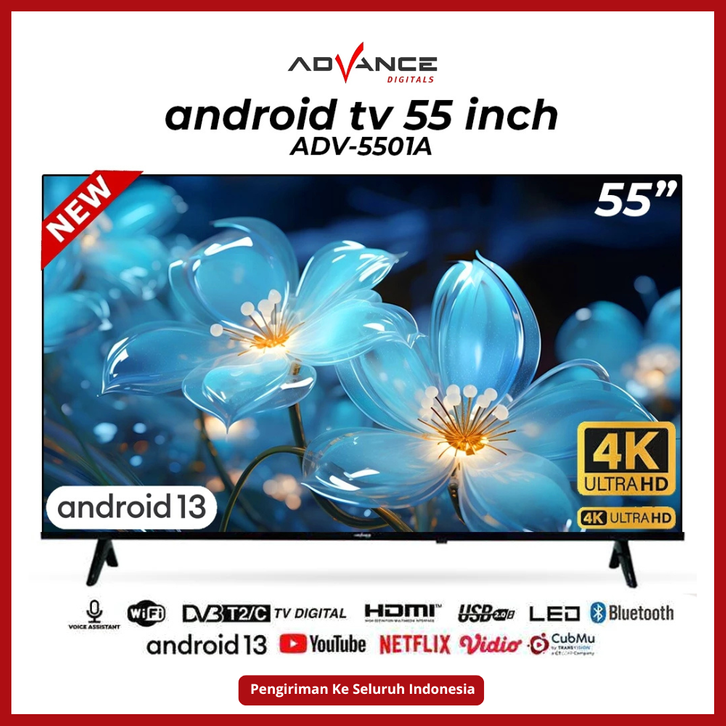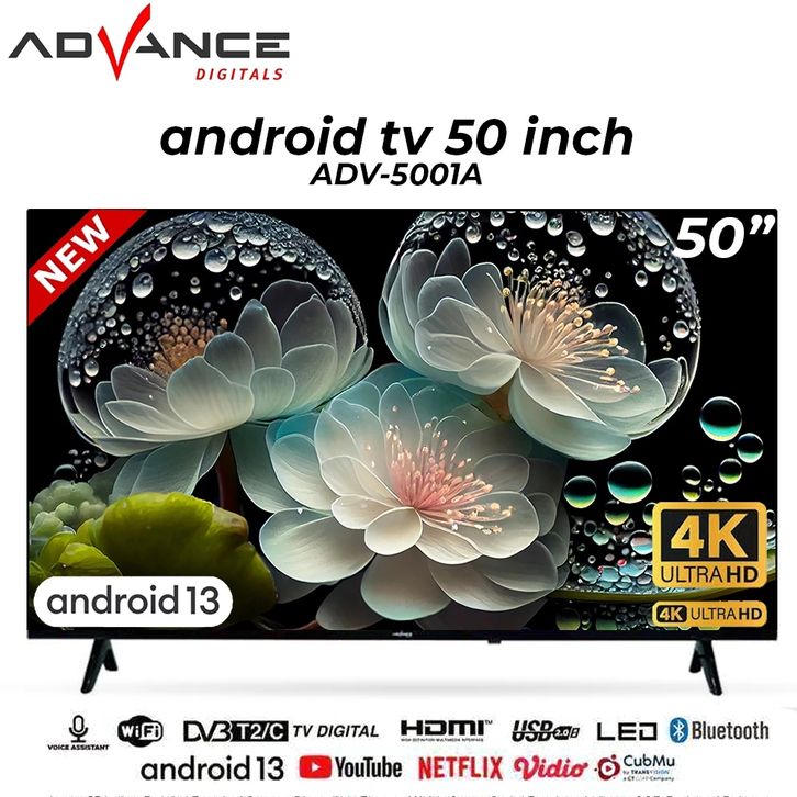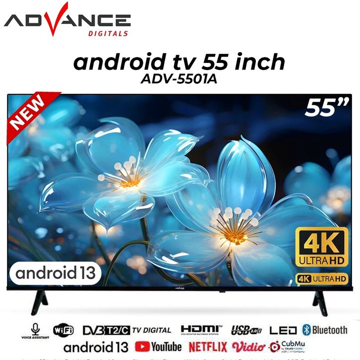 SMART TV ADVANCE 55 50 43 32 24 INCH LED TELEVISI ANDROID 13.0 FRAMELESS WITH VOICE ASSISTANT HDMI USB AV PANEL LG MURAH