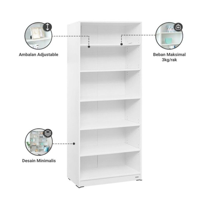 Informa - Bookcase - Pablo Rak Buku 6 Tingkat - Putih