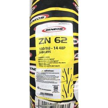 Ban Zeneos ZN62 100/80 Ring 14 Tubeless Original Berkualitas Resmi