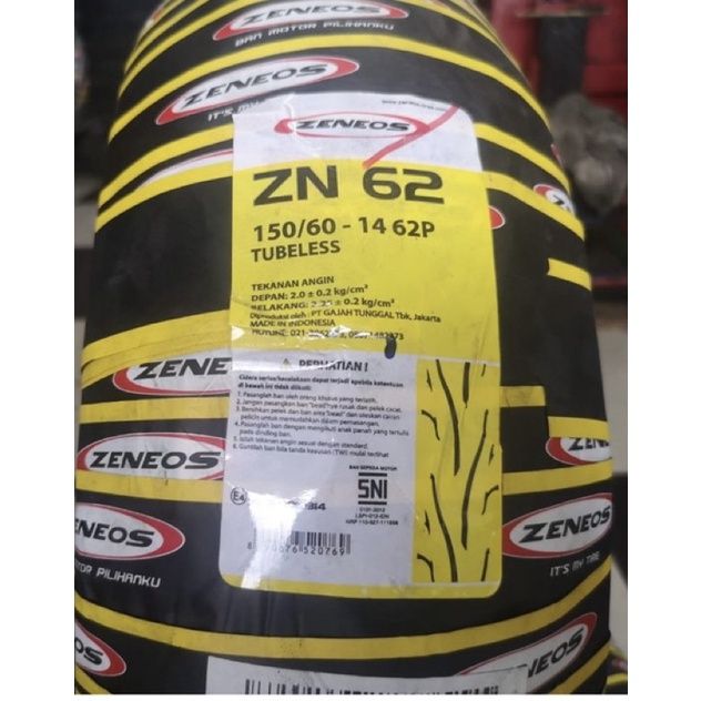 Ban Motor Aerox Zeneos ZN62 150/60 Ring 14 Tubeless Original Terbaru