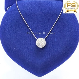 KALUNGG PERAK ASLI SILVER WANITA 925 LAPIS EMS PUTIH MODEL LiIONTIN BULAT LANGSUNG PERMATA FULL - PERHIASAN PERAK WANITA