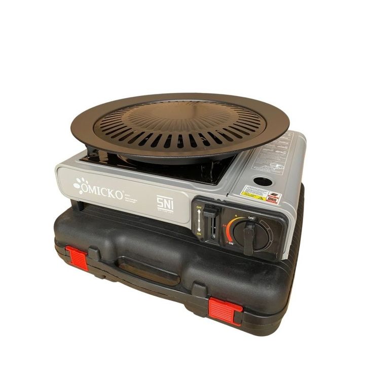 Paket Kompor Gas Portable 2 In 1 Kompor Gas 1 Tungku + Grill Pan Anti Lengket