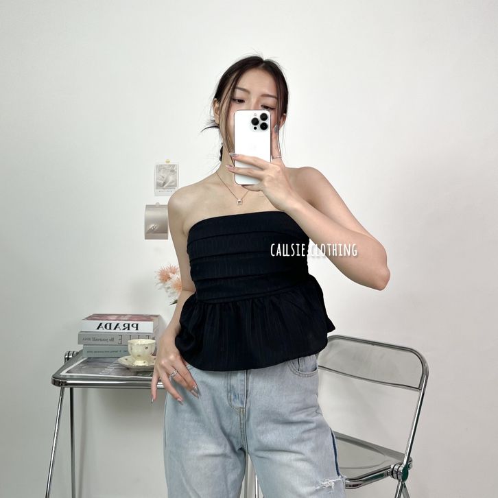 Atasan Wanita Callsie Jessie Top import/ crop top / sabrina / off shoulder top / kemben / kamisole / korea to
