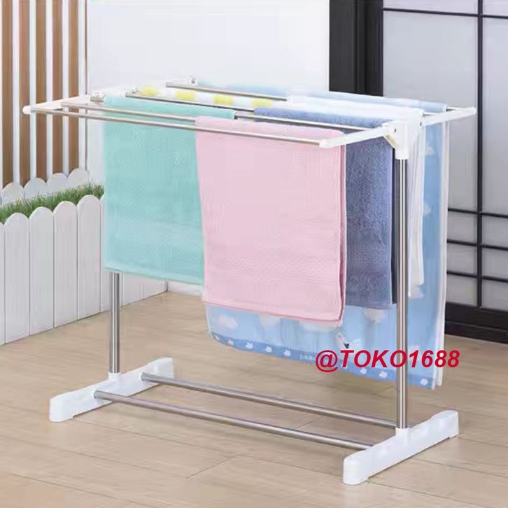 Jemuran Handuk Baju Celana Rak Pakaian Peralatan Rumah Tangga Warna Putih Bahan Stainless Steel Ringan mudah dipakai