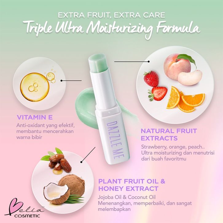 DAZZLE ME Fruit Justice Lip Balm | Moisturizing | Hydrating | Cracked Lips | Melembabkan | Perawatan Bibir / SERENA COSM