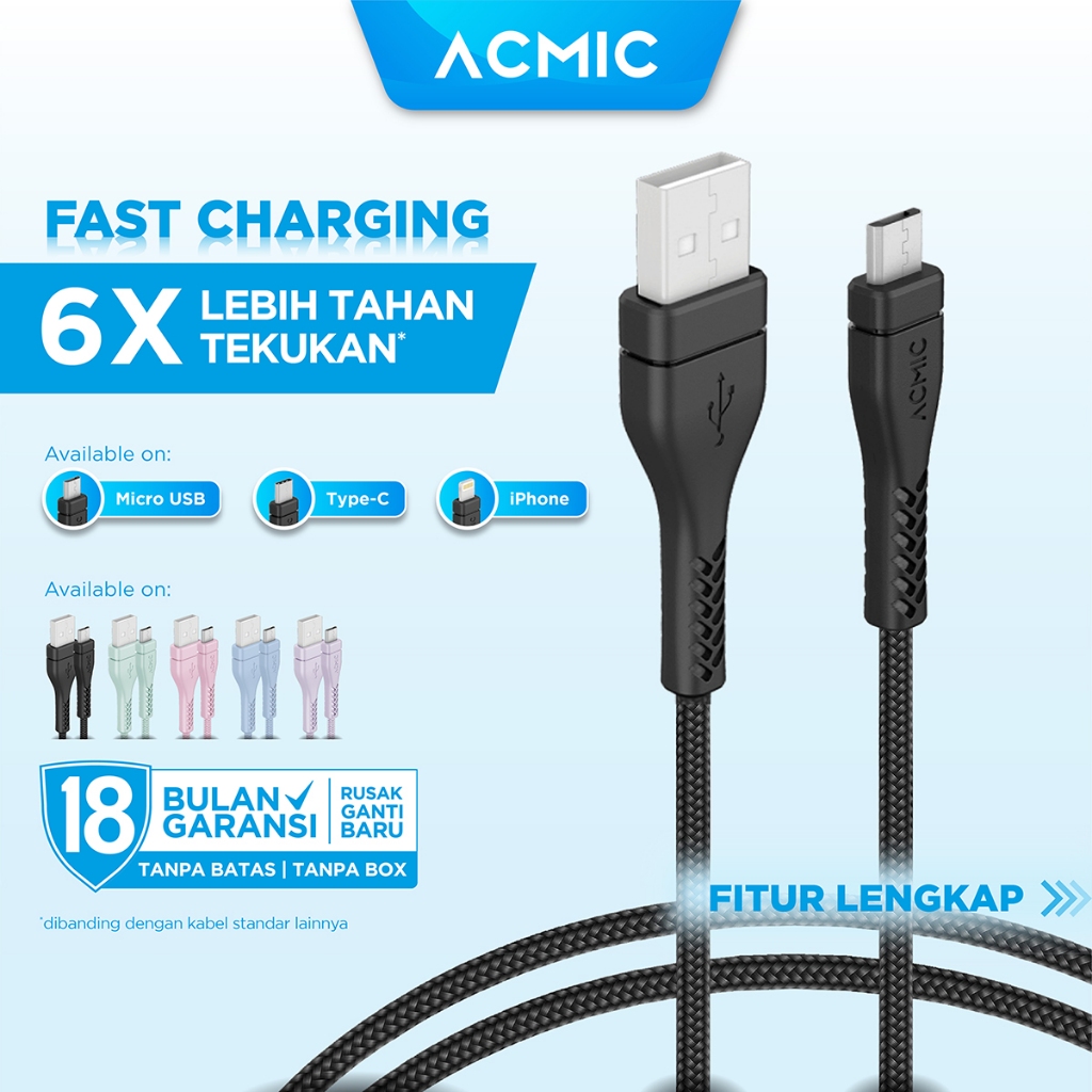 ACMIC BRAIDED LINE KABEL DATA FAST CHARGING IPHONE/TYPE C/MICRO USB 1M