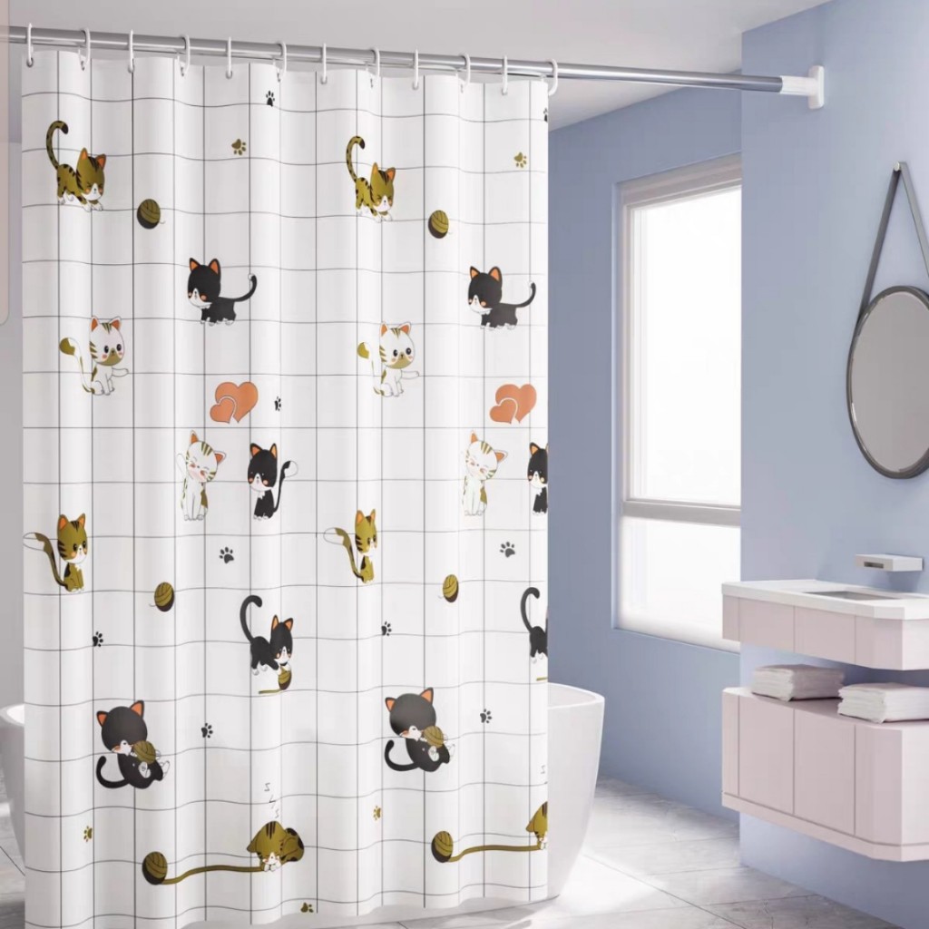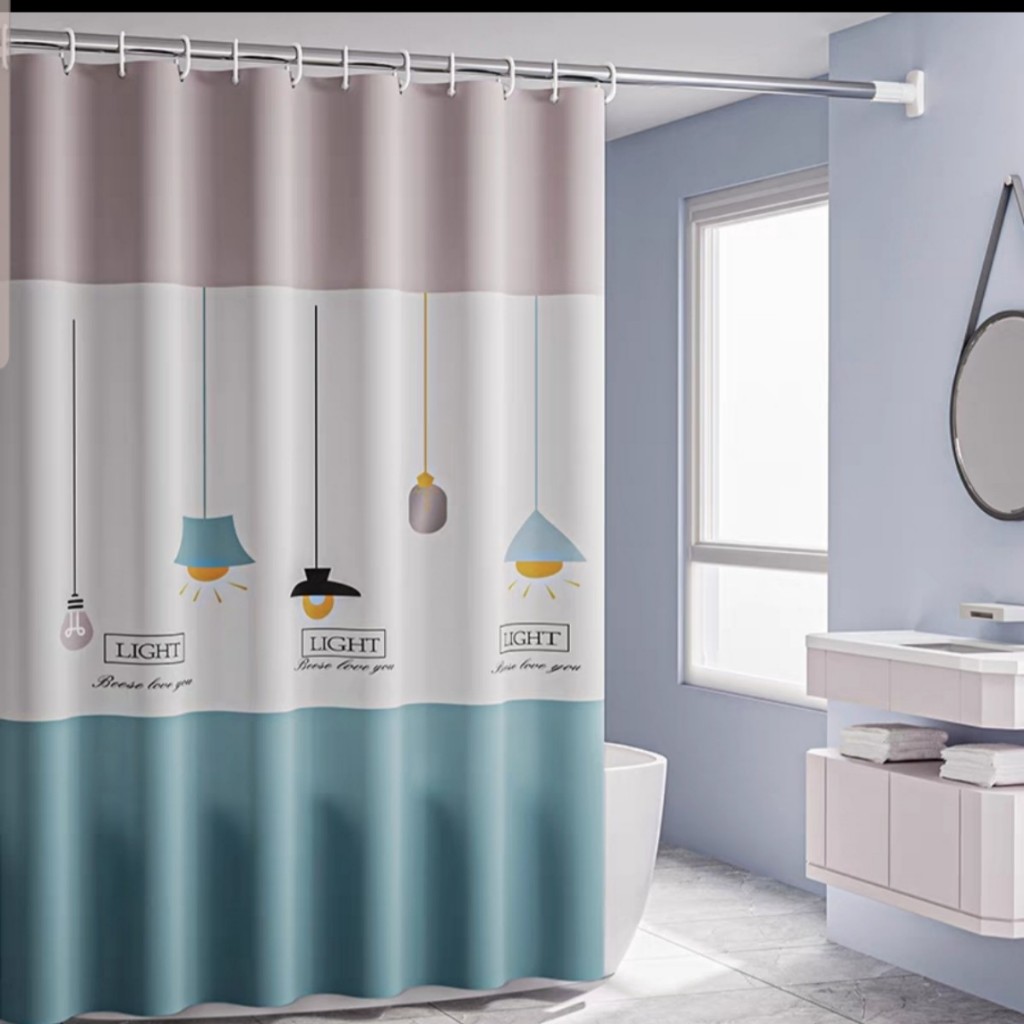 TIRAI KAMAR MANDI ANTI AIR BAHAN PEVA SUDAH DILENGKAPI DENGAN PENGAITCURTAIN SHOWER WATERPROOF