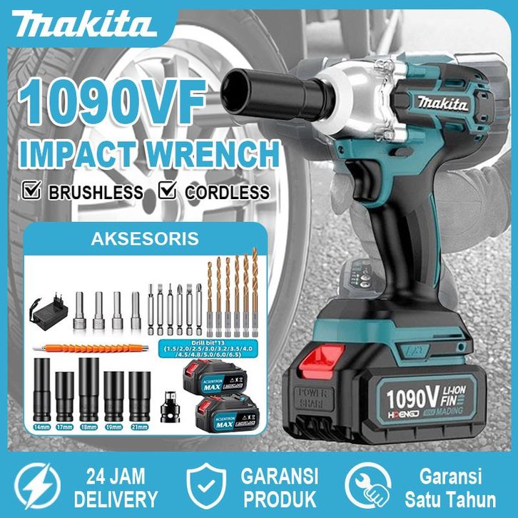 MESIN BOR MAKITA IMPACT 2 BATERAI CORDLESS WRENCH 1600NM IMPEK BATRE PEMBUKA BAUT TRUK MOBIL MOTOR MULTIFUNGSI