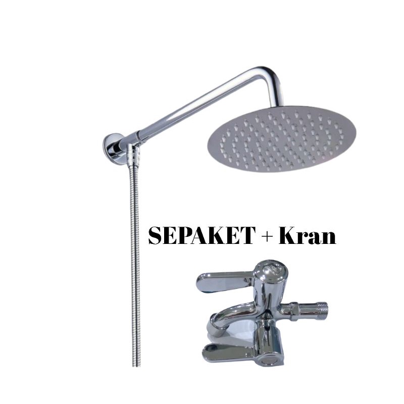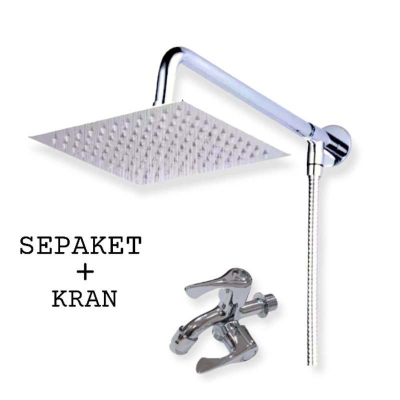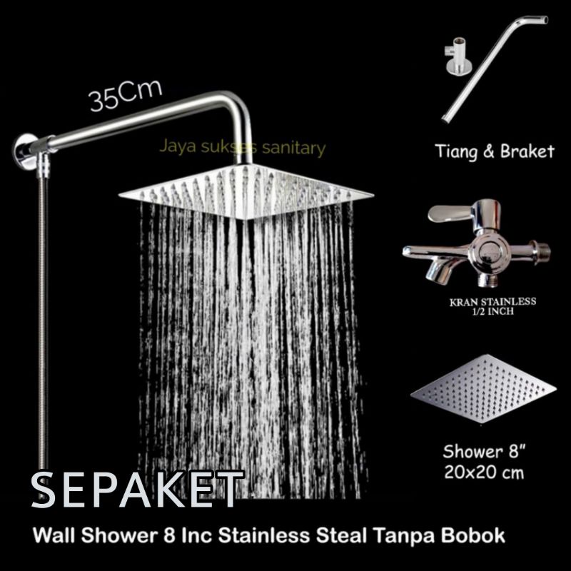 SHOWER KAMAR MANDI RAINFALL 8 INCH STAINLESS SATU SET SHOWER MANDI TANPA BOBOK GRATIS KRAN CABANG