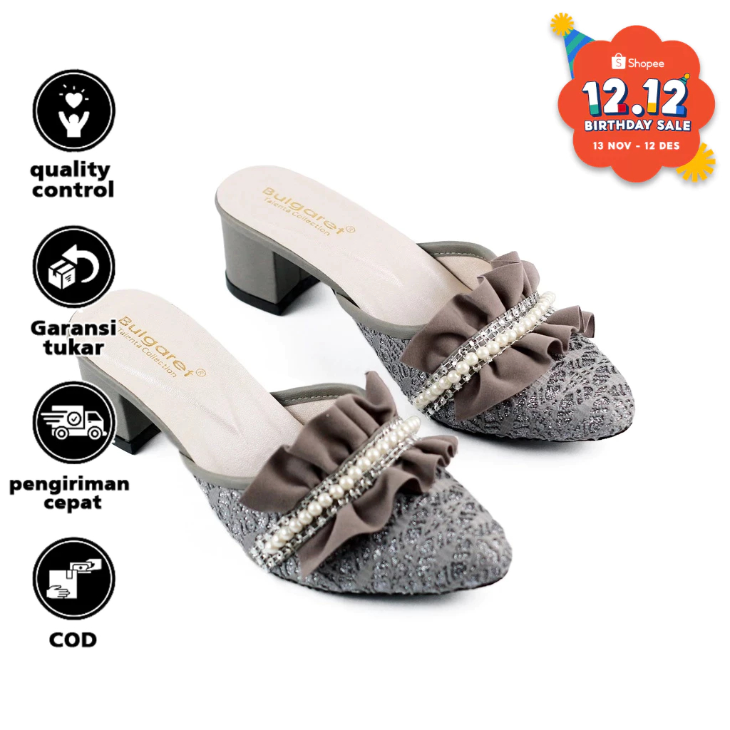HIGH HEELS WANITA SENDAL PESTA MUTIARA HAK TAHU BRUKAT R 06