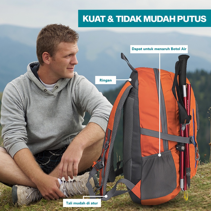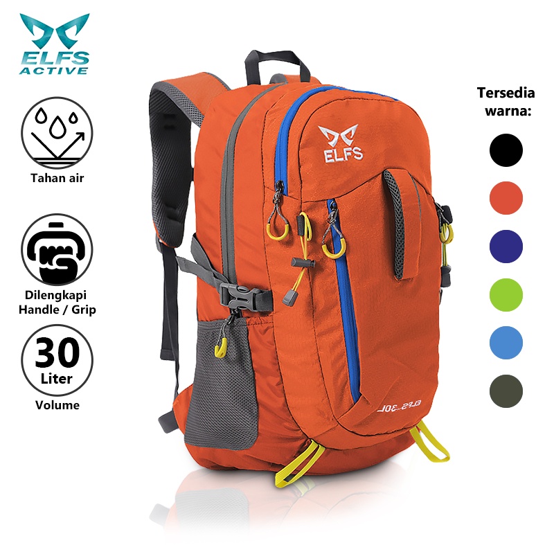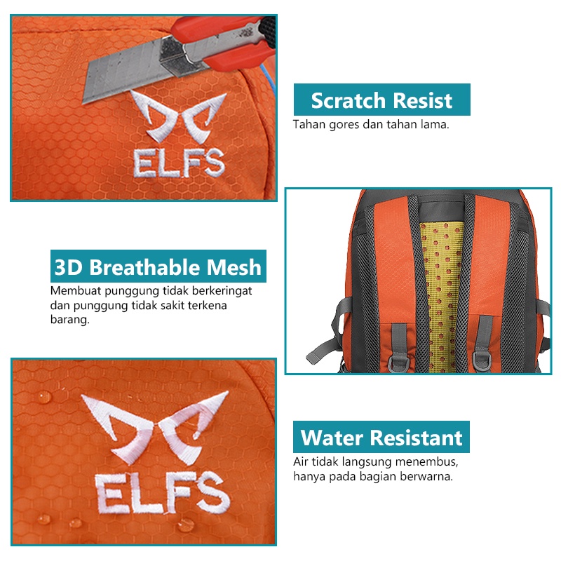 ELFS ACTIVE TAS GUNUNG CARRIER RANSEL 30L TENTENG WATER RESISTANT HIKING BAG 3D MESH TENTENG