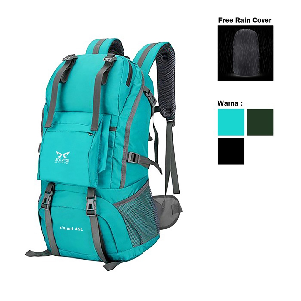 ELFS ACTIVE TAS CARRIER HIKING RINJANI 45L FREE RAINCOVER RANSEL GUNUNG