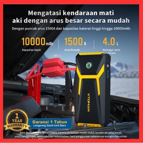 Jumper Aki Mobil Vtoman Portable Car Jump Starter Powerbank Jumper Aki mobil dan Motor Pompa Ban Elektrik Mini