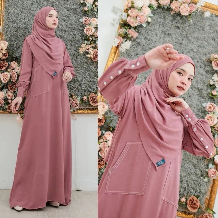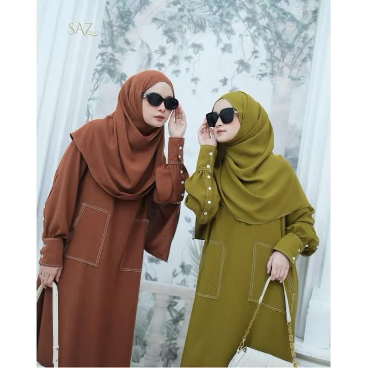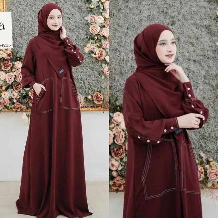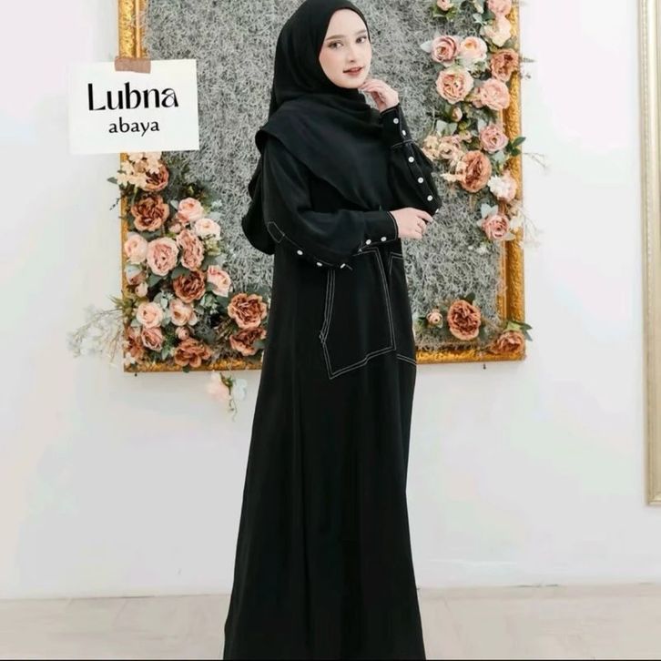 Abaya Lubna Set Gamis Hijab Abaya Benang Timbul Baju Umroh Wanita Dress Wanita 2026 Free Pasmina Oval