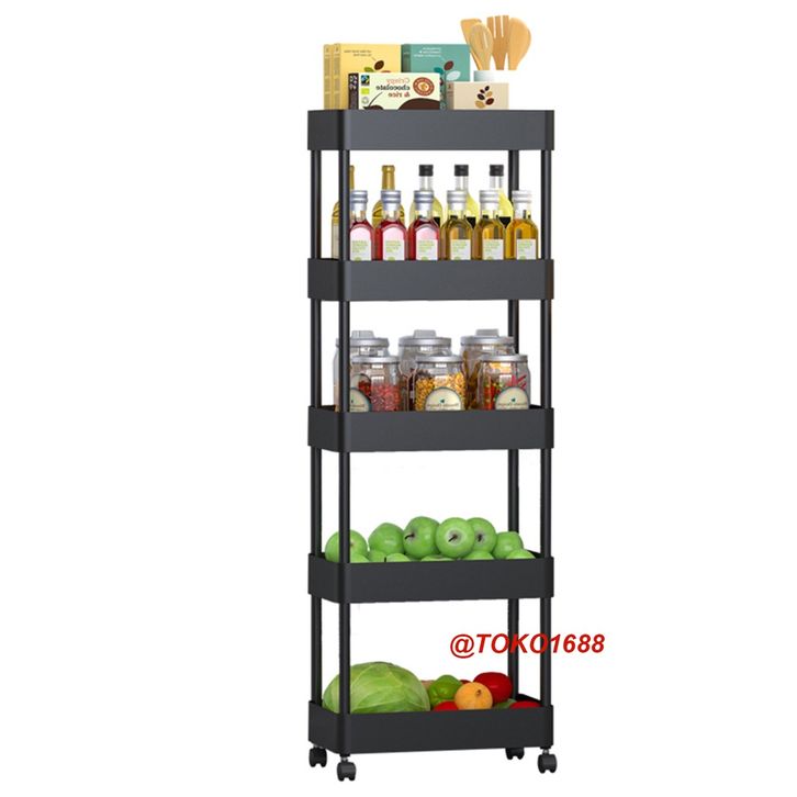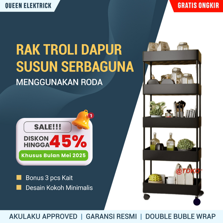 Rak Dapur Multifungsi Troli Kamar Mandi Susun Square 5 Tingkat Dengan Roda Model Kotak Peralatan Rumah Tangga minimalis