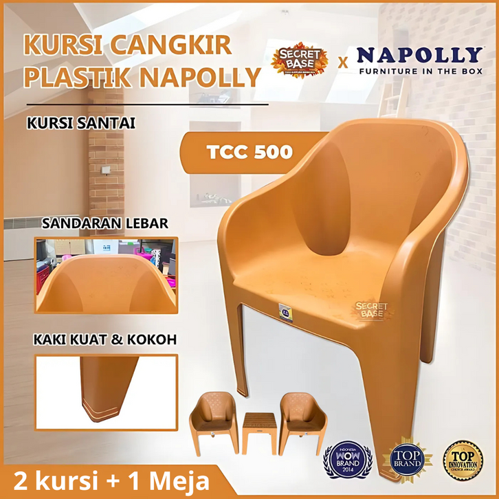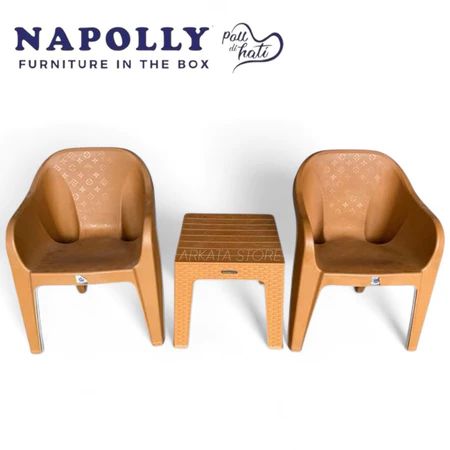 1 SET 2 KURSI TERAS SANTAI NAPOLLY TCC 500 MEJA RUANG TAMU OUTDOOR DEPAN RUMAH MINIMALIS ROTAN SANDARAN MURAH