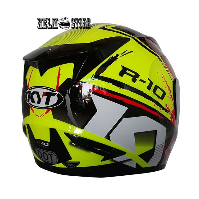 HELM KYT R10 MOTIF #2 YELLOW FLUO RED KACA SMOKE KYT R 10 FULL FACE SNI DOT