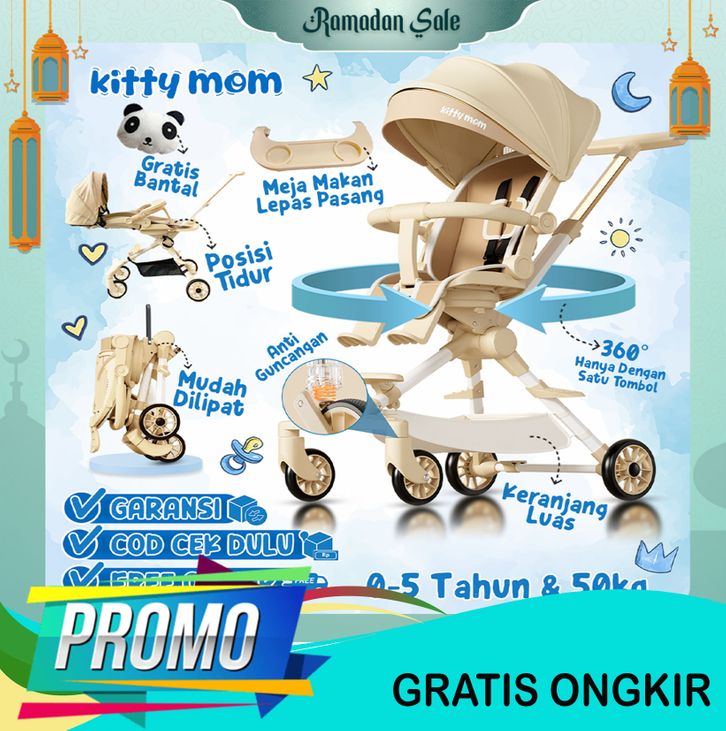 Kitty Mom - Stroller Bayi Balita Travelling 2 Arah Newborn - Dilipat dan Berbaring Cabin