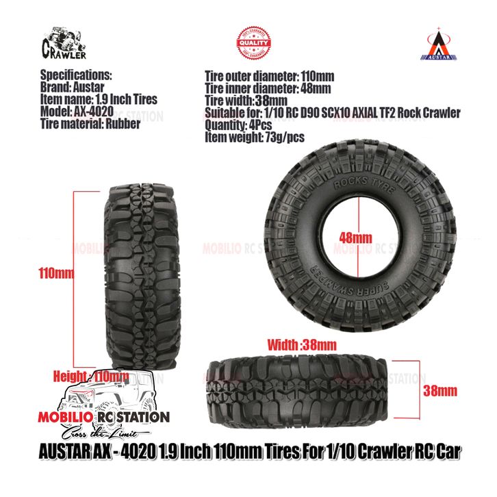 Ban Austar AX-4020 Tires 1.9" 4 Pcs for 1/10 RC Crawler Car Adventure