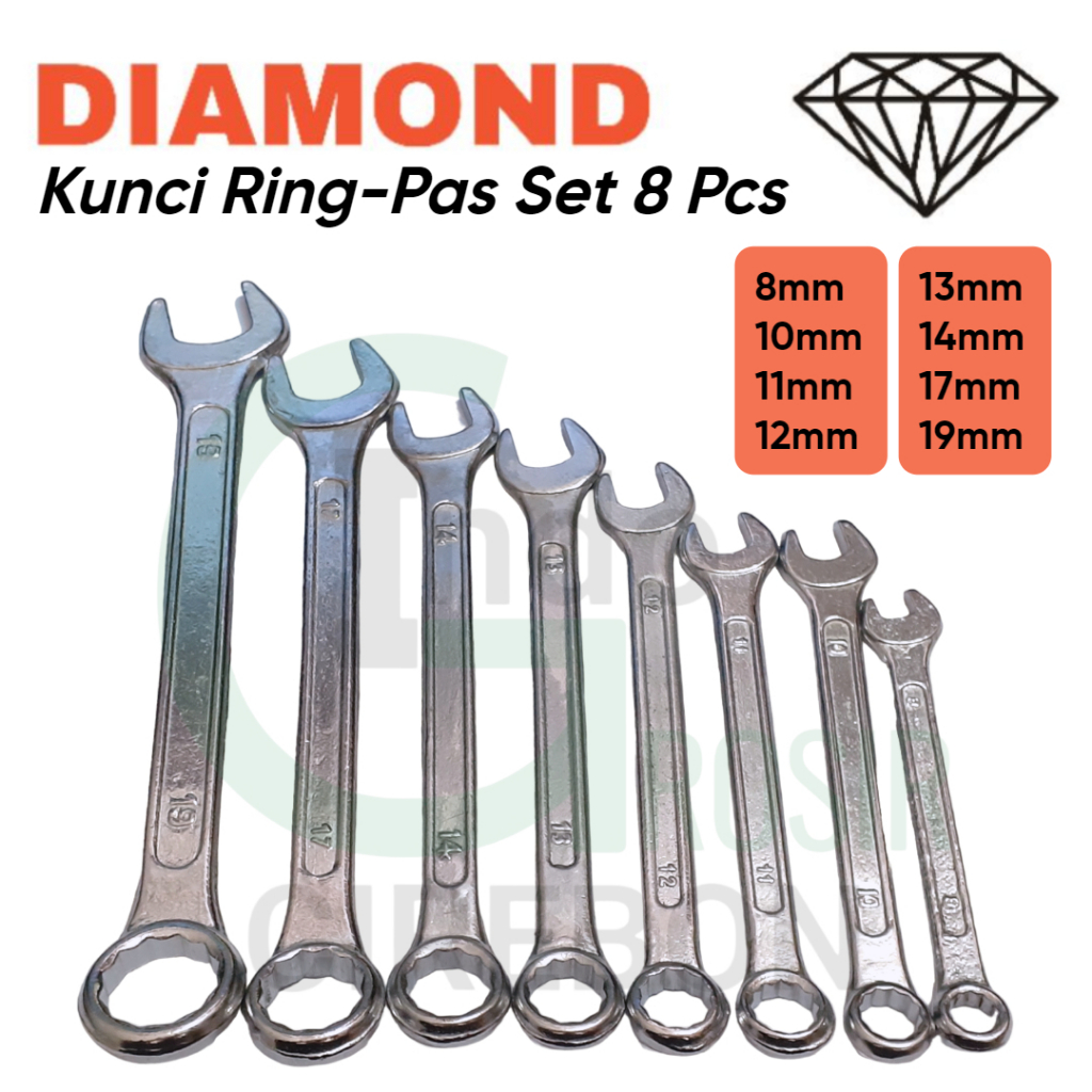 Diamond Kunci Ring Pas Set 8 Pcs Ring-Pas Set 8-19 Mm Combination Spaner