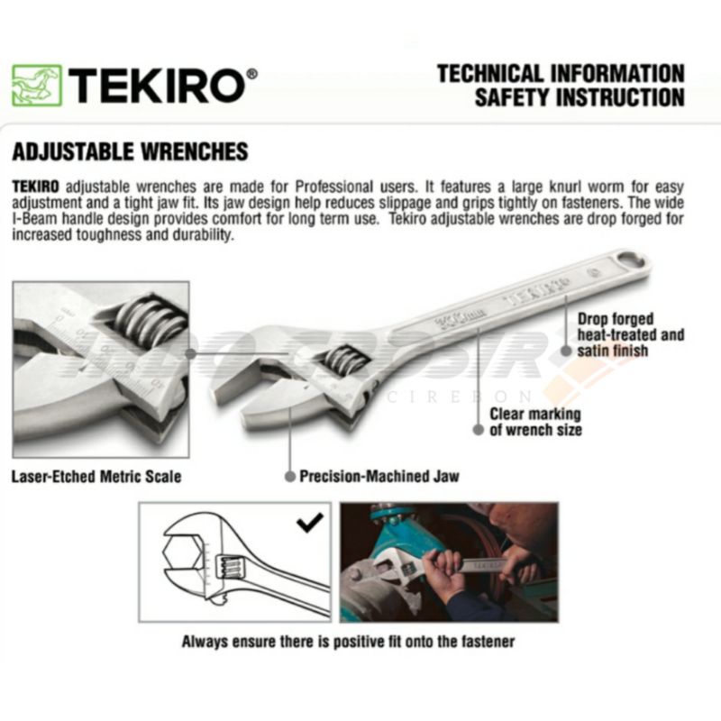 TEKIRO Kunci Inggris 8 10 12 Inch Adjustable Wrench 8" 10" 12" Alat Mengencangkan Melepas Mur Baud