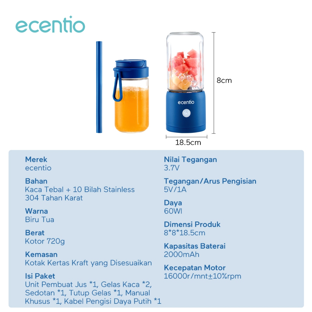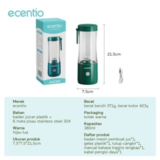 BLENDER MINI PORTABLE USB JUICER BUAH MATA PISAU ECENTIO 380ML BERKUALITAS ECI ELEKTRONIK