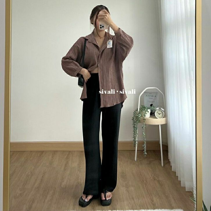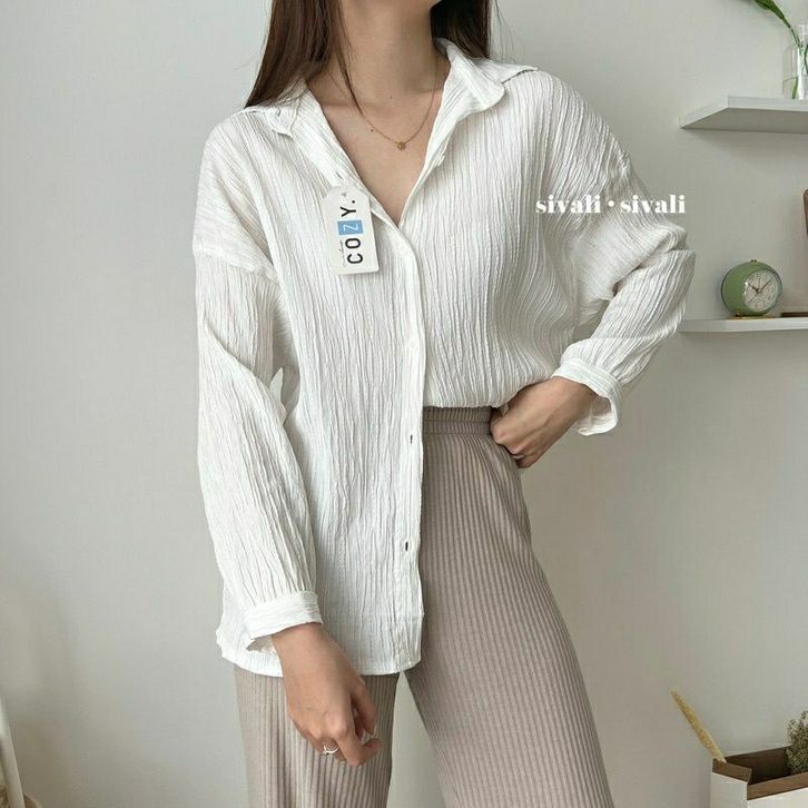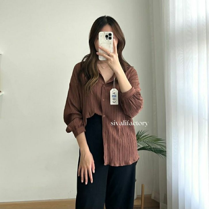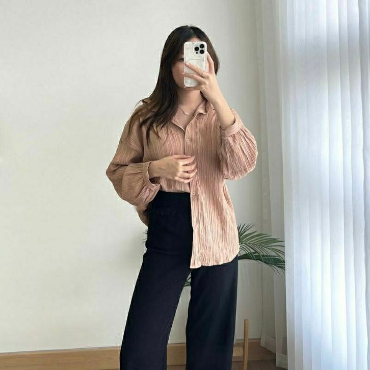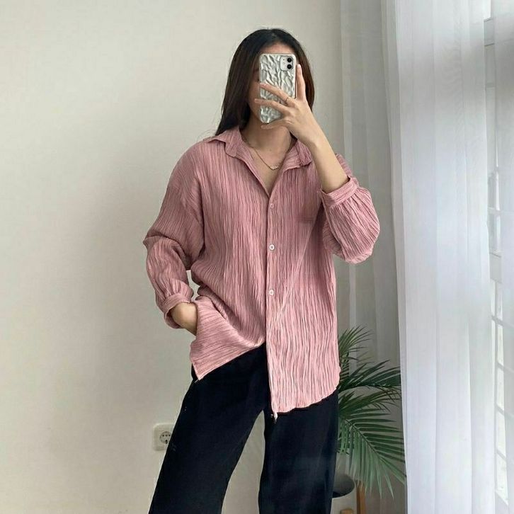KEMEJA WANITA OVERSIZE HA-RI SHIRT KEMEJA LADY CRUSH BASIC POLOS KEKINIAN TERLARIS