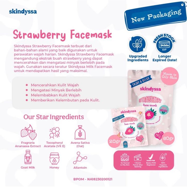 MASKER BY DAISY ORGANIC SKINDYSSA FACE MASK DAISY ORGANIK MASKER BPOM FULL SIZE MINI SIZE 60GR MASKER WAJAH BUBUK B