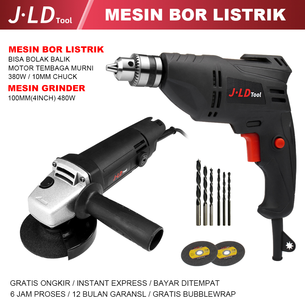 JLD Mesin Bor listrik 10mm J10-3 + JLD Gerinda 4Inch J9954C [PAKET 2ITEM] Electric Drill 10mm mesin gerinda tangan murah