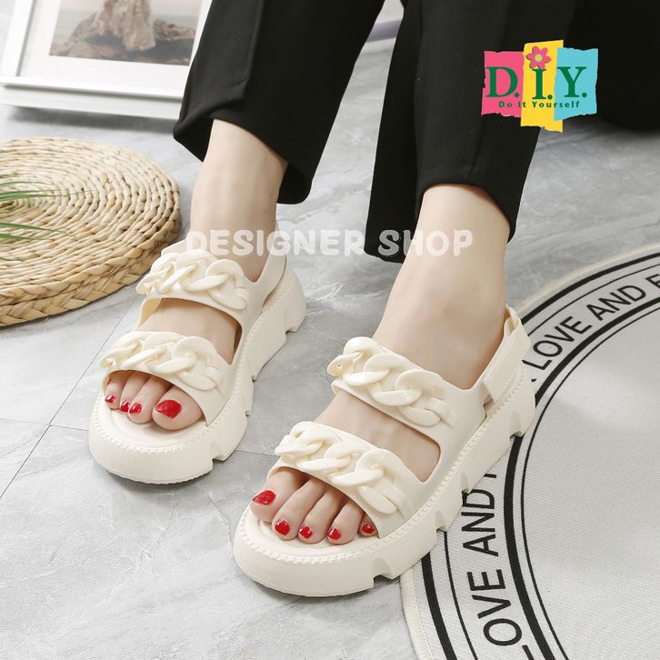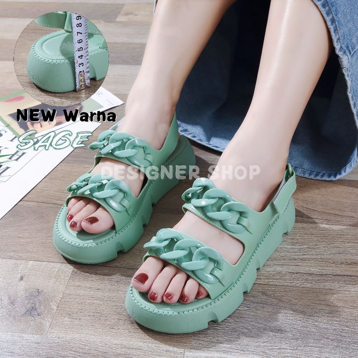 SANDAL WANITA SENDAL KARET JELLY WEDGES PLATFORM TEBAL EMPUK TALI BELAKANG KOREAN STYLE TERMURAH KEKINIAN