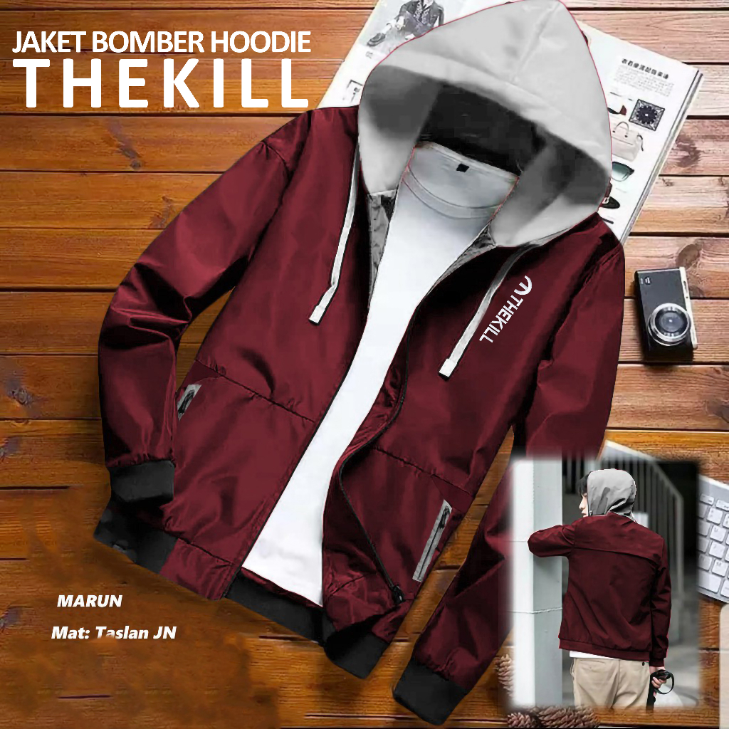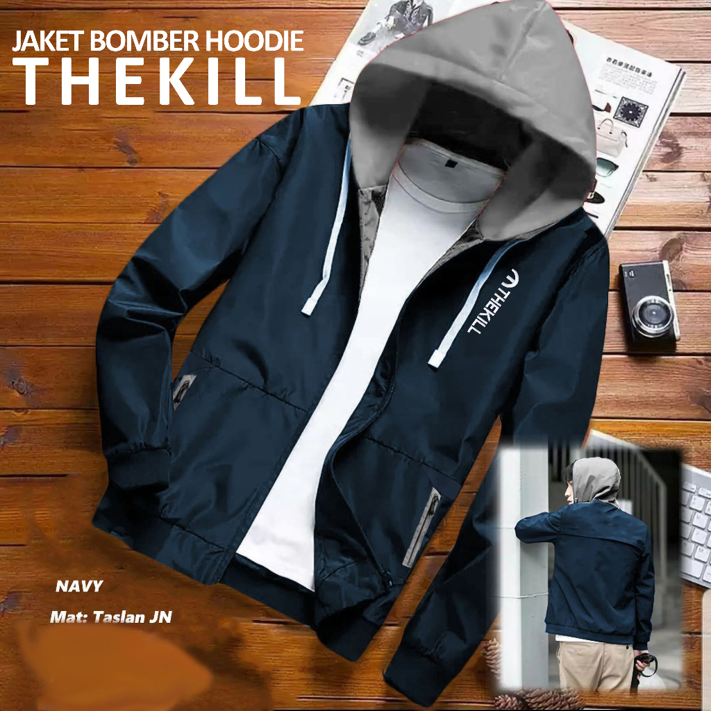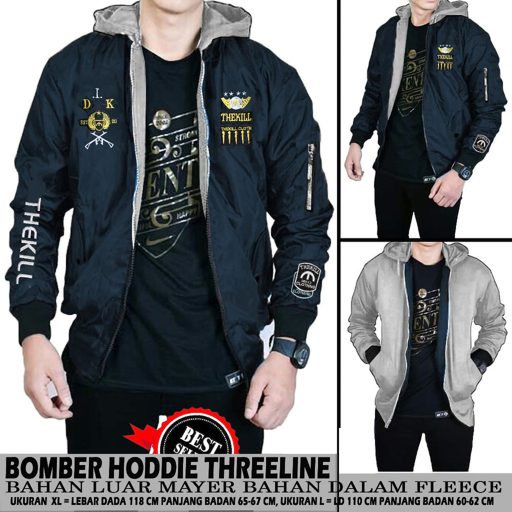 JAKET BOMBER HOODIE PRIA WANITA UNISEX THREELINE BAHAN PARASUT