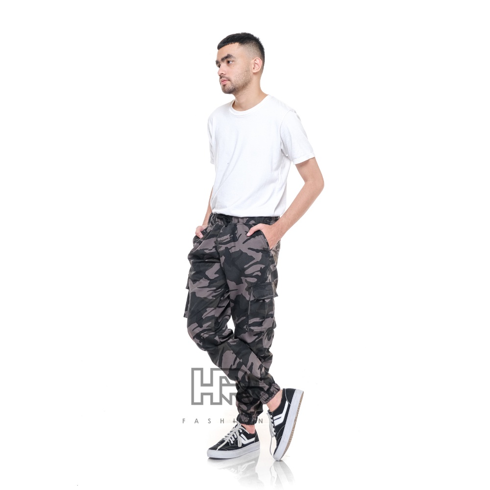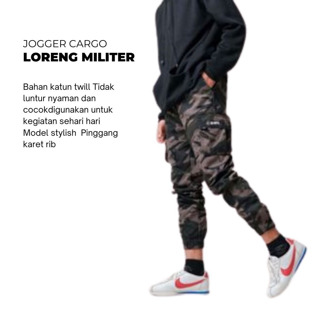 CELANA JOGER CARGO LORENG PINGGANG KARET MOTIF LORENG
