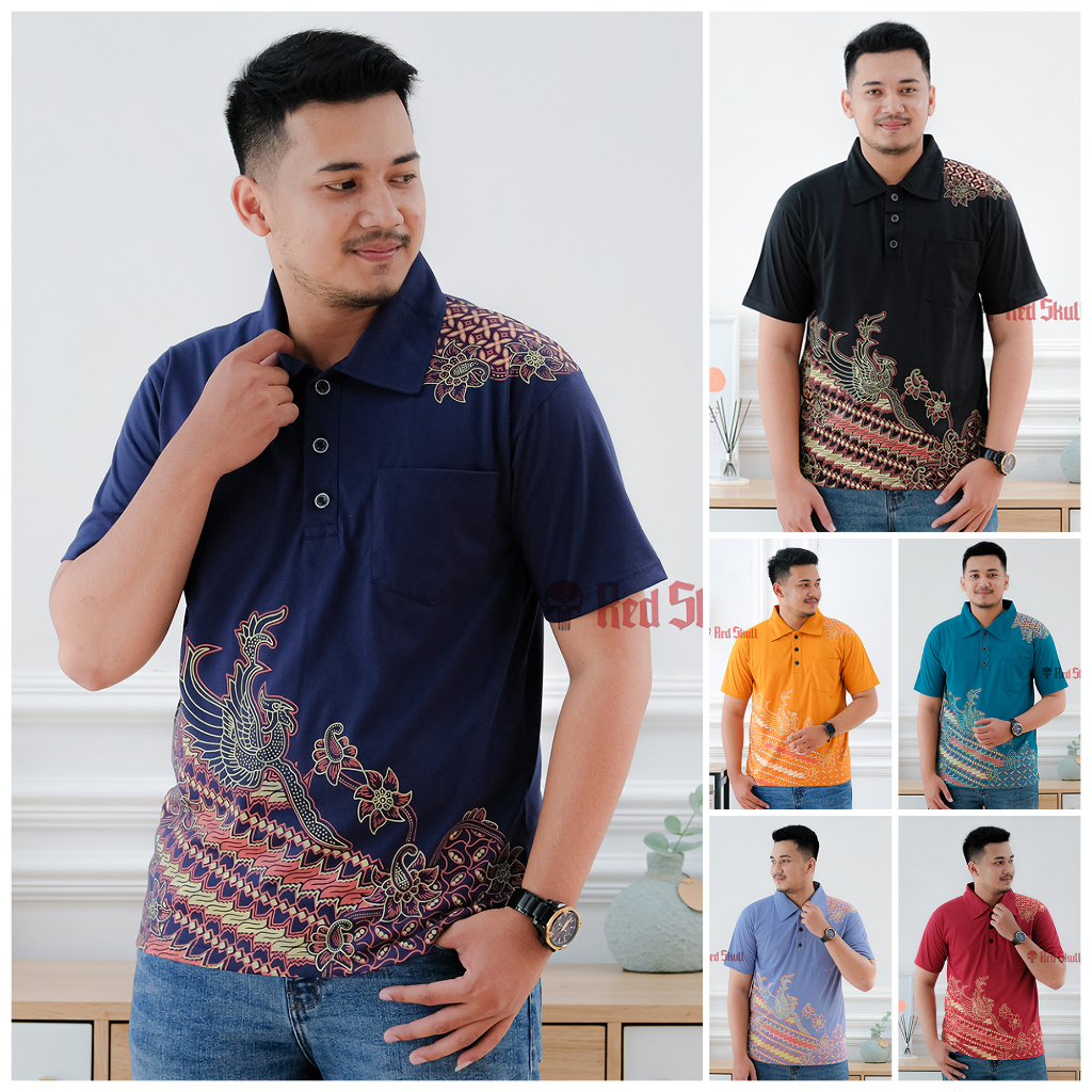 KAOS KERAH POLO KATUN BATIK BURUNG BATIK SOLO ADA SAKU