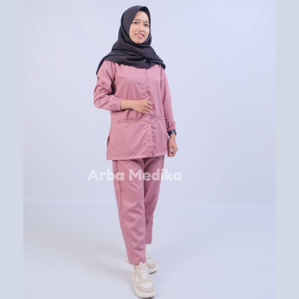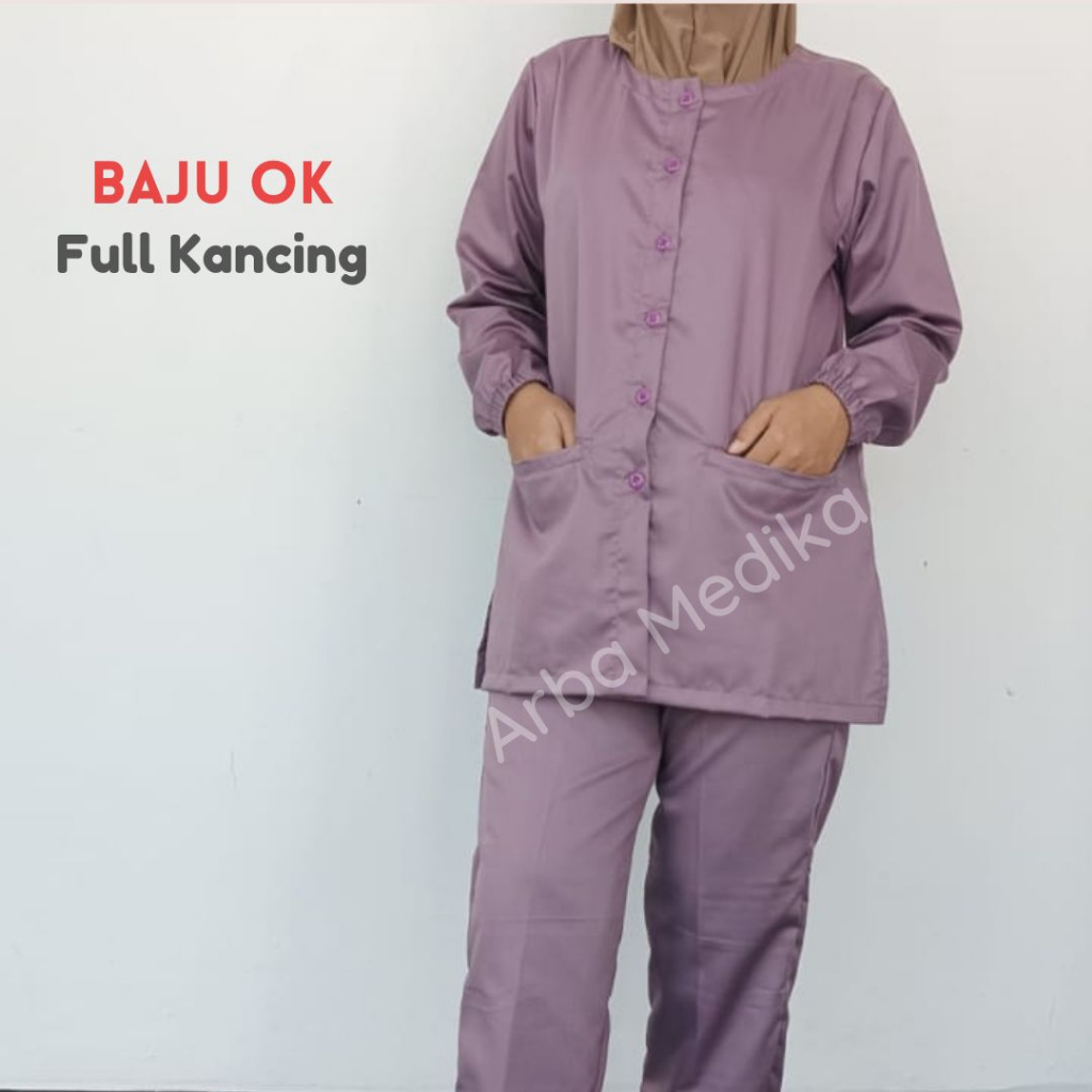 BAJU OK OKA KANCING DEPAN FULL LENGAN PANJANG KARET DOKTER PETUGAS MEDIS PERAWAT JAGA TOYOBO