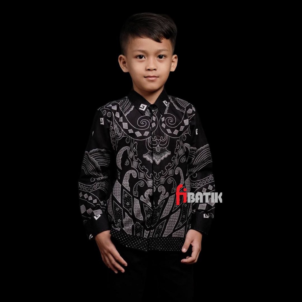 KEMEJA BATIK ANAK LAKI-LAKI COUPLE BATIK AYAH ANAK LENGAN PANJANG DAN PENDEK WARNA HITAM MOTIF G KECIL
