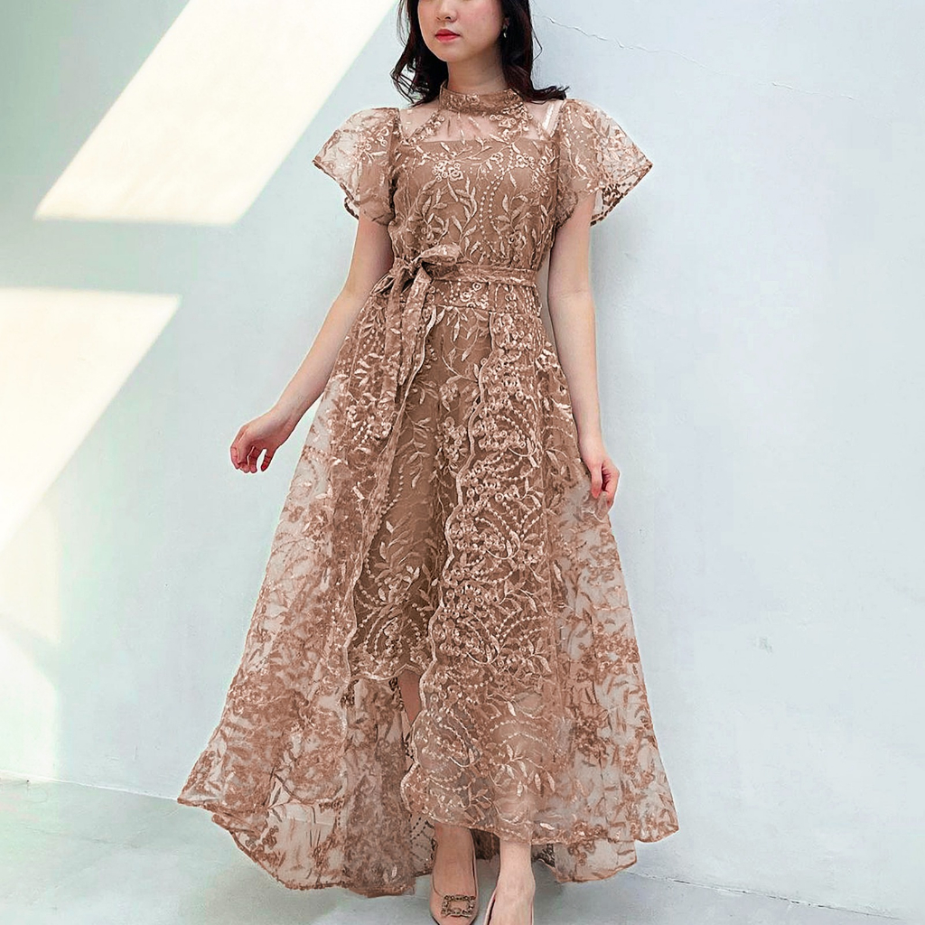DRESS CHARITY M L XL DRESS PESTA KONDANGAN NATAL BROKAT TILE SIMPLE ELEGAN MEWAH GAUN FORMAL TERBARU