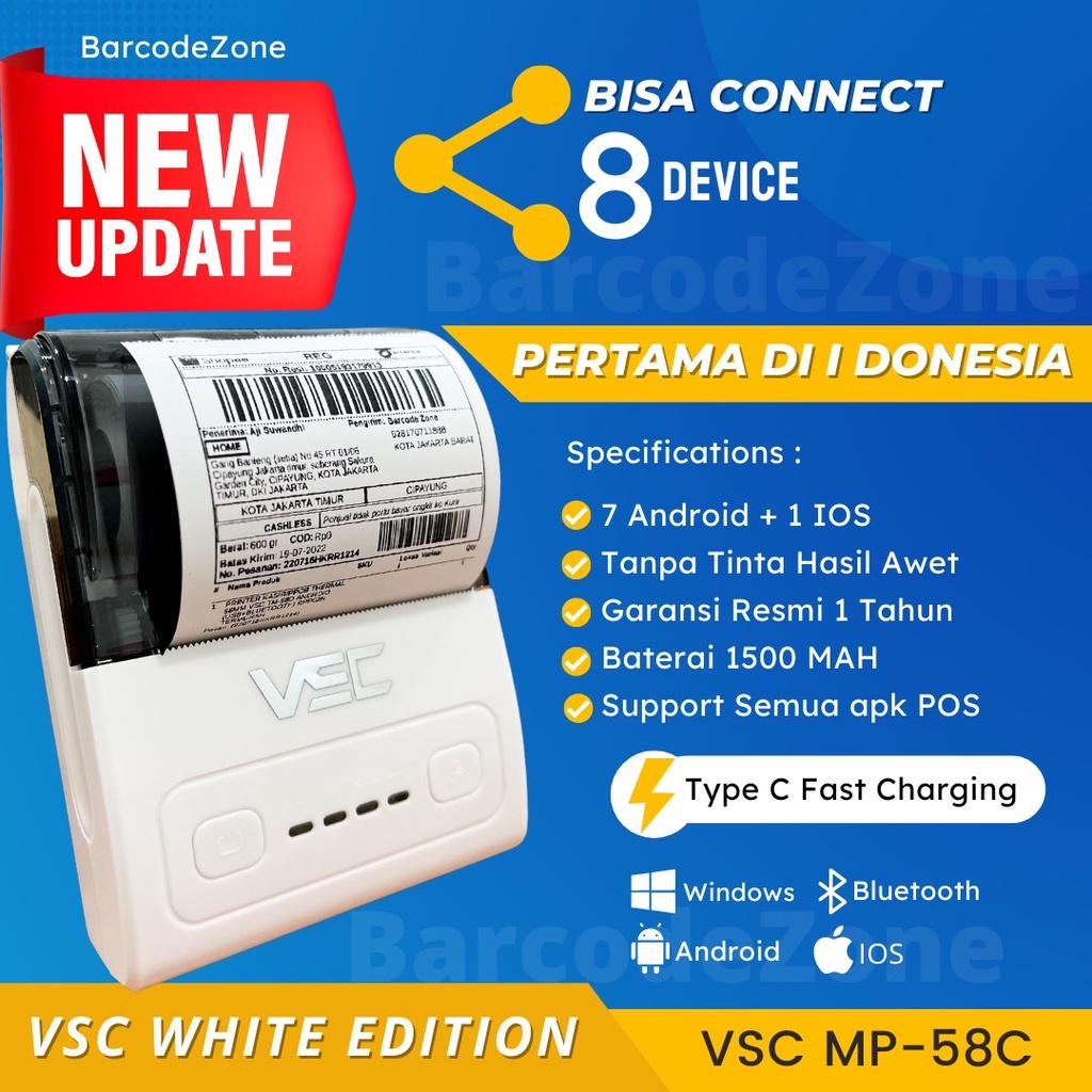 PRINTER THERMAL BLUETOOTH VSC MP-58C RPP02 58MM SUPPORT MOKA ALAMAT - PRINTER KASIR